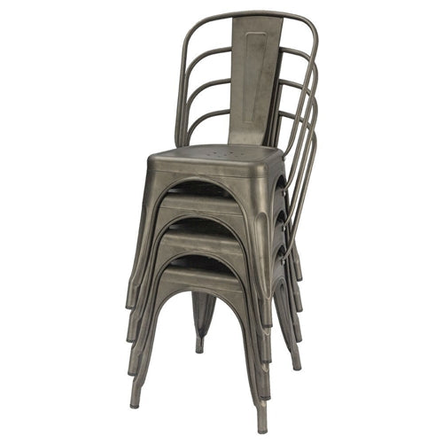 Set of 4 - Stackable Modern Cafe Bistro Dining Side Chair in Gun Metal Finish