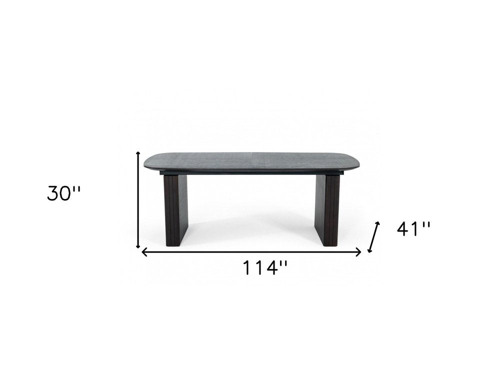 114" Smoked Rectangular Manufactured Wood Self-Storing Leaf Dining Table