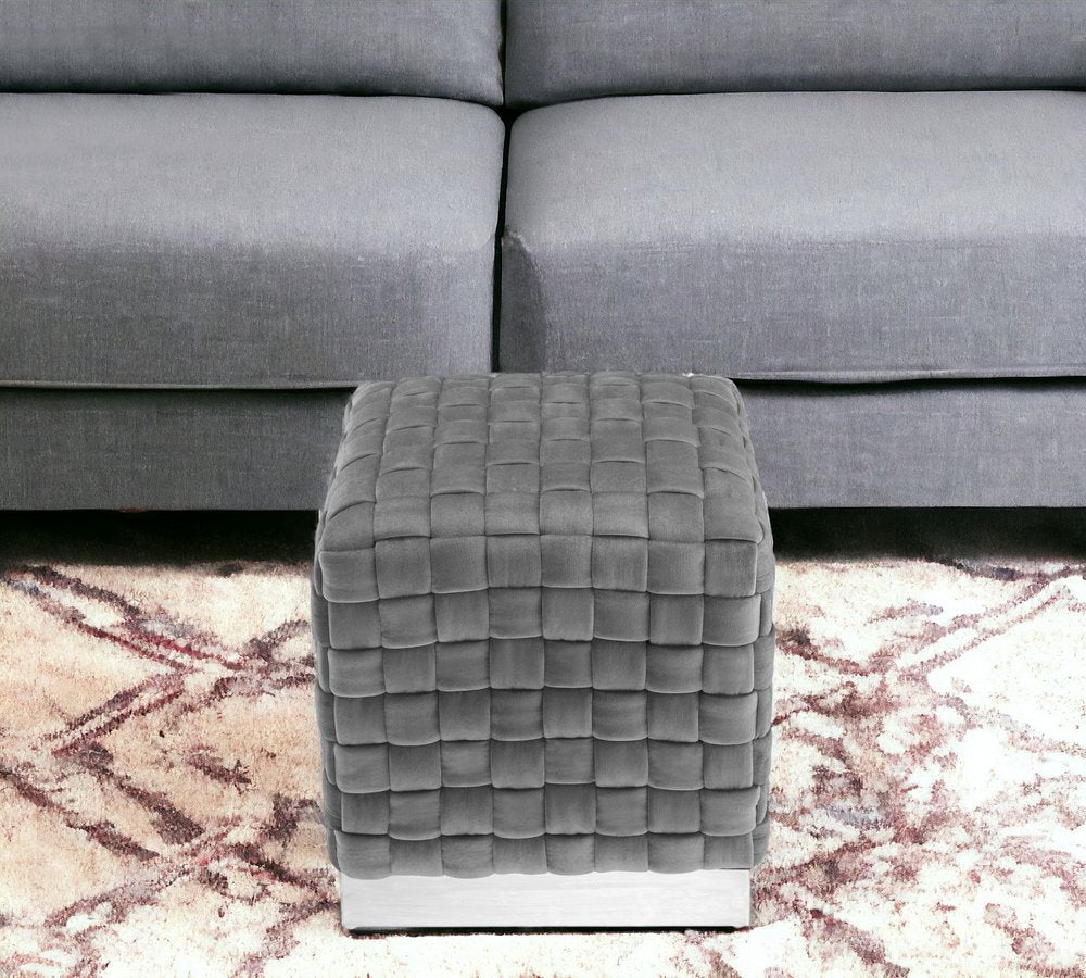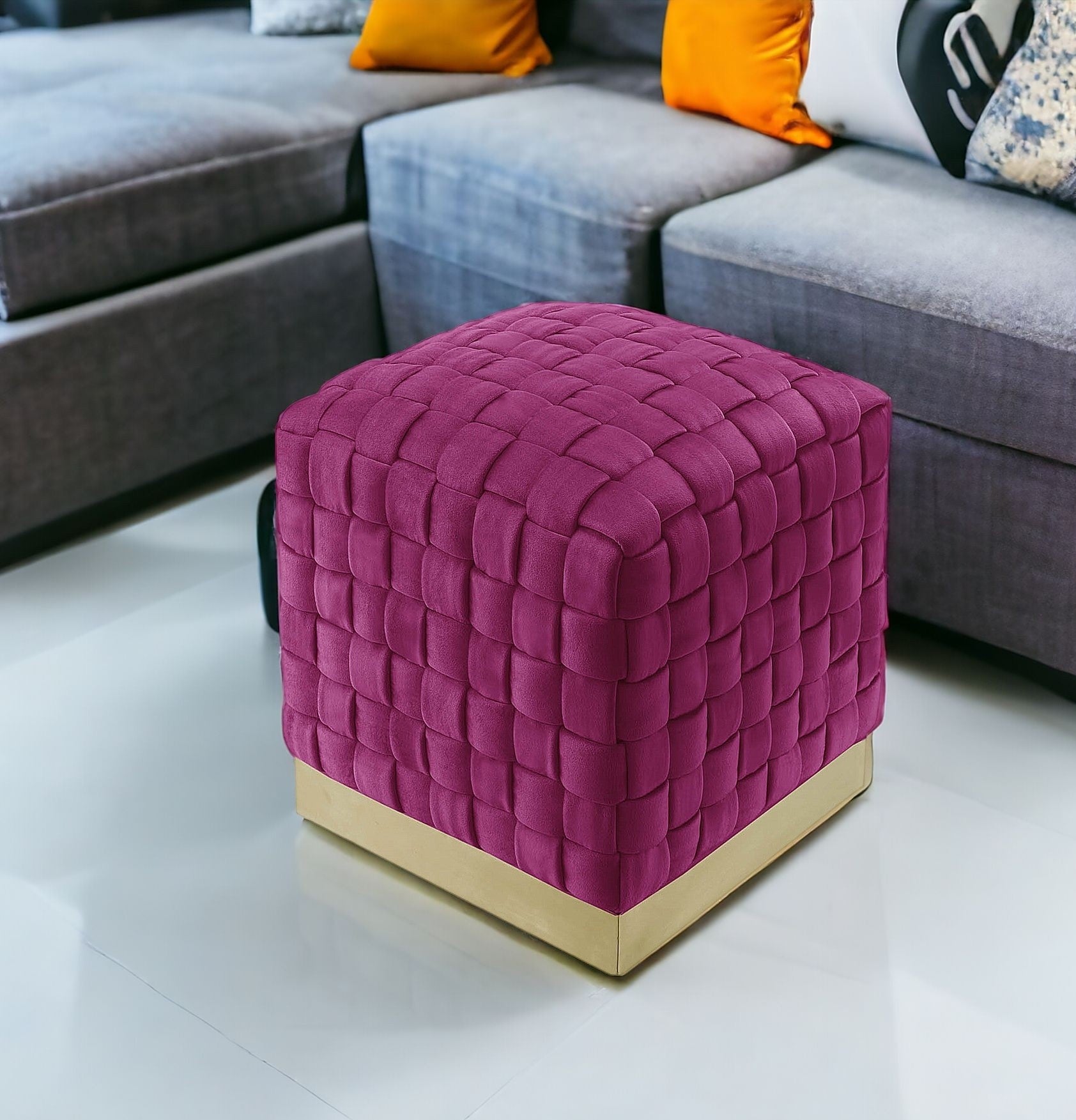 17" Fuchsia Velvet And Gold Ottoman