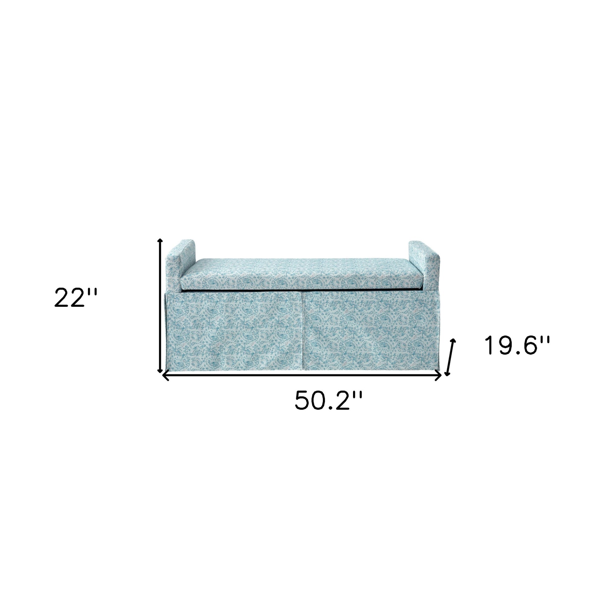 20" White and Red Linen Upholstered Floral Storage Bench with Shoe Storage