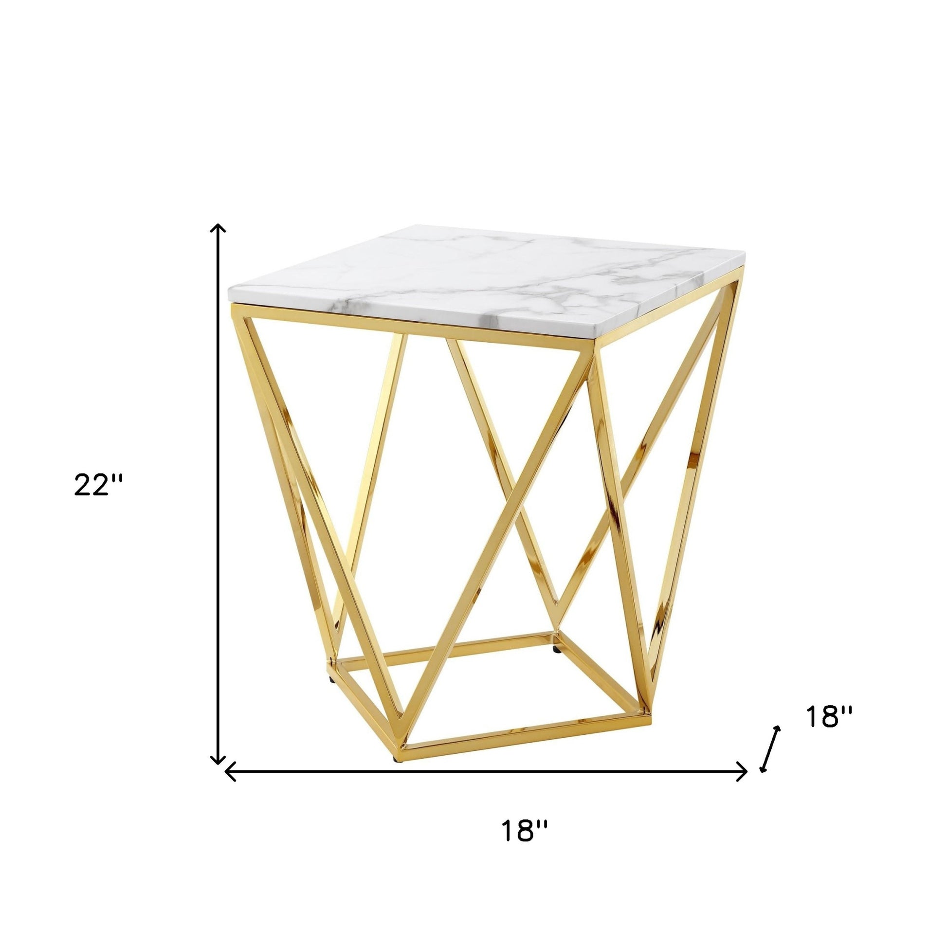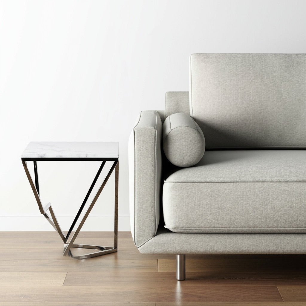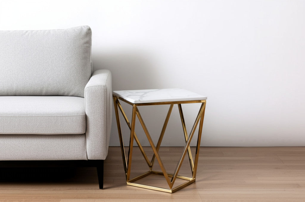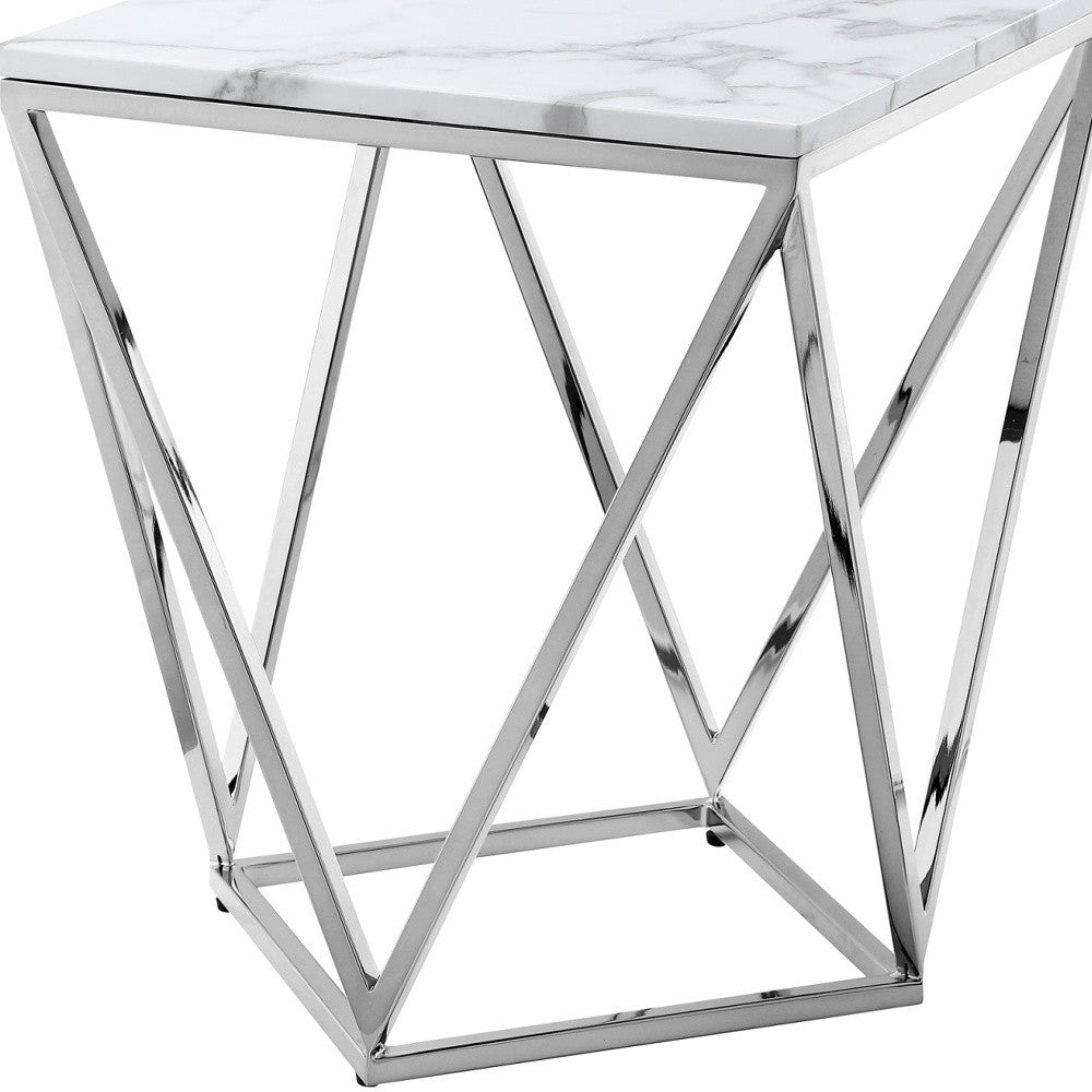 22" Silver Metallic And White Stone Square End Table