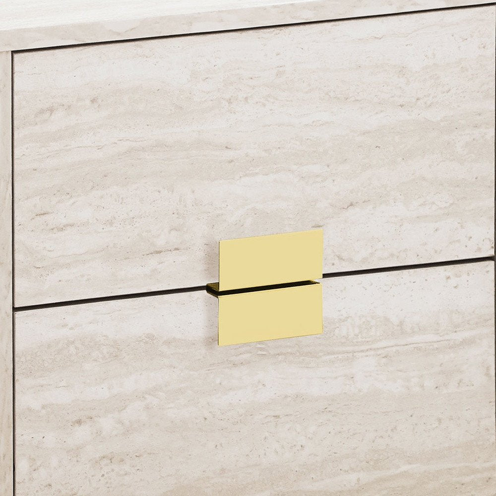 24" Gold And Beige End Table With Two Drawers