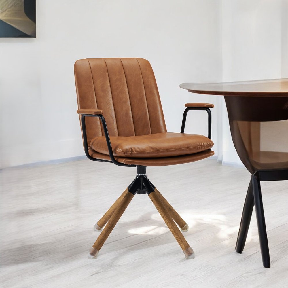 23" Brown Faux Leather Swivel Arm Chair