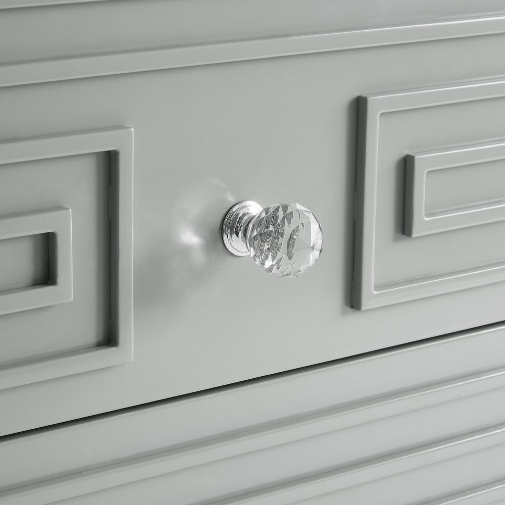 24" Clear and Light Gray End Table with Two Drawers