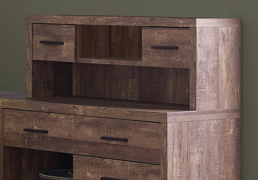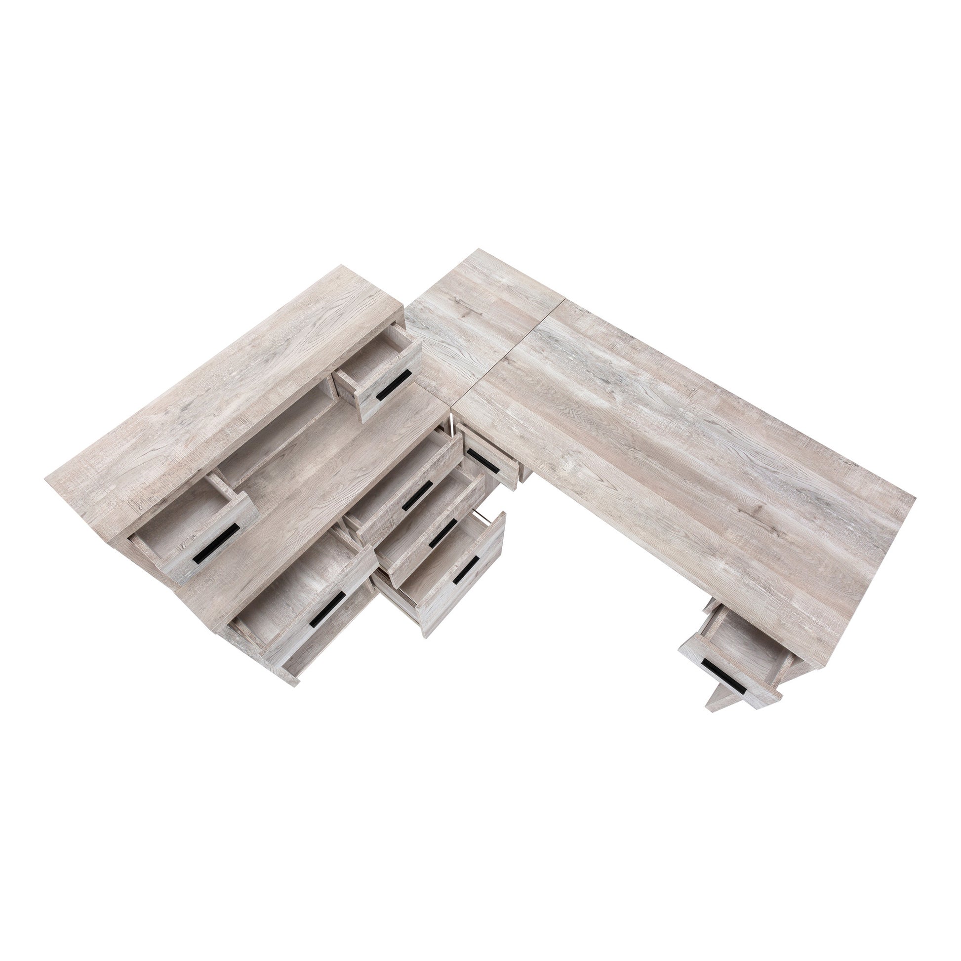 63" Taupe L Shape Computer Desk With Eight Drawers
