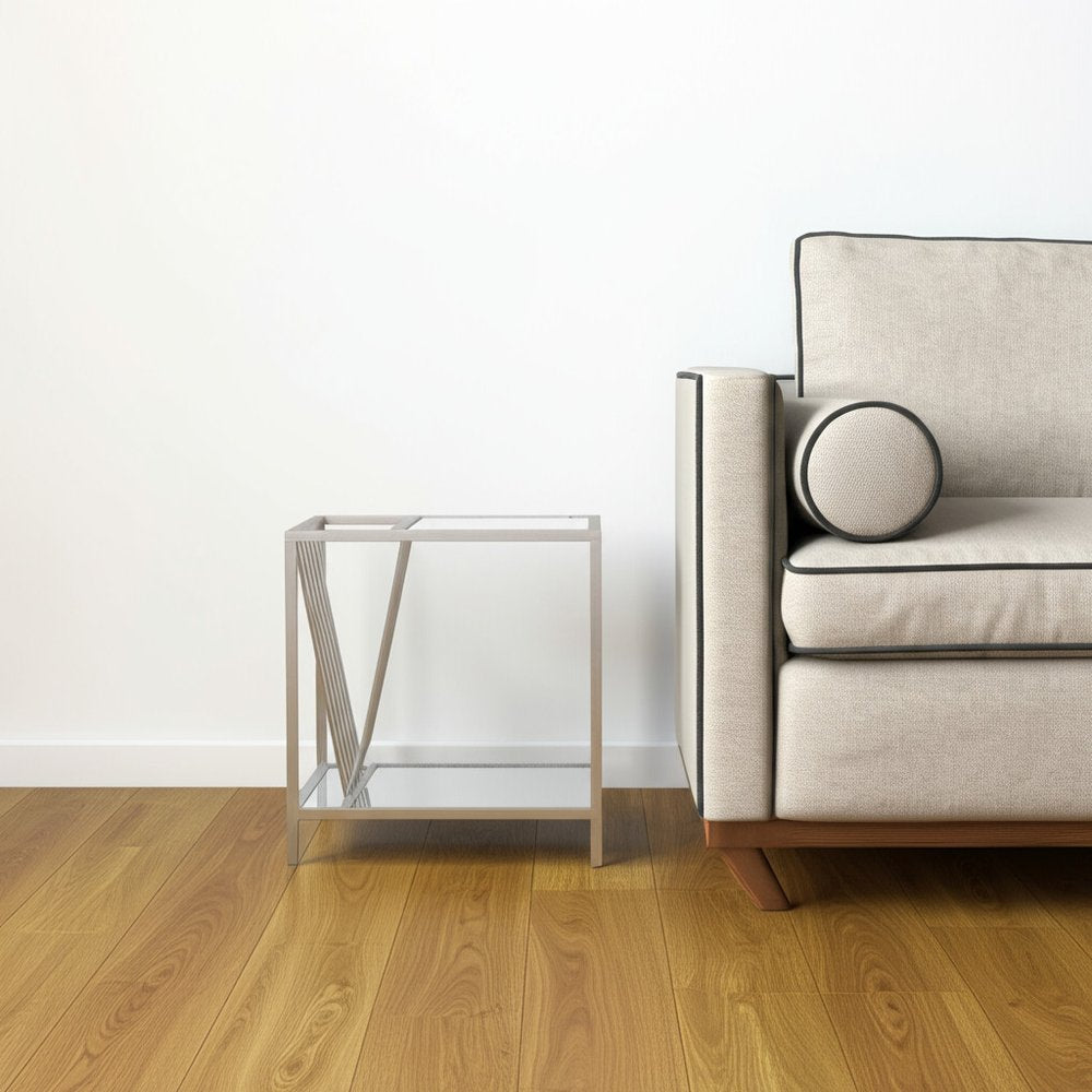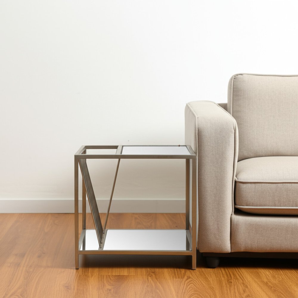 24" Silver Mirrored Glass And Iron End Table With Shelf