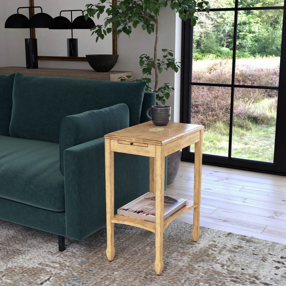 25" Beige Manufactured Wood Rectangular End Table With Shelf