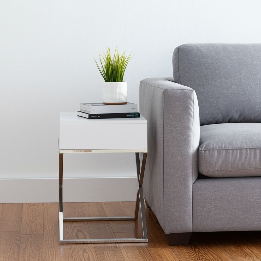 25" Silver And White End Table With Drawer