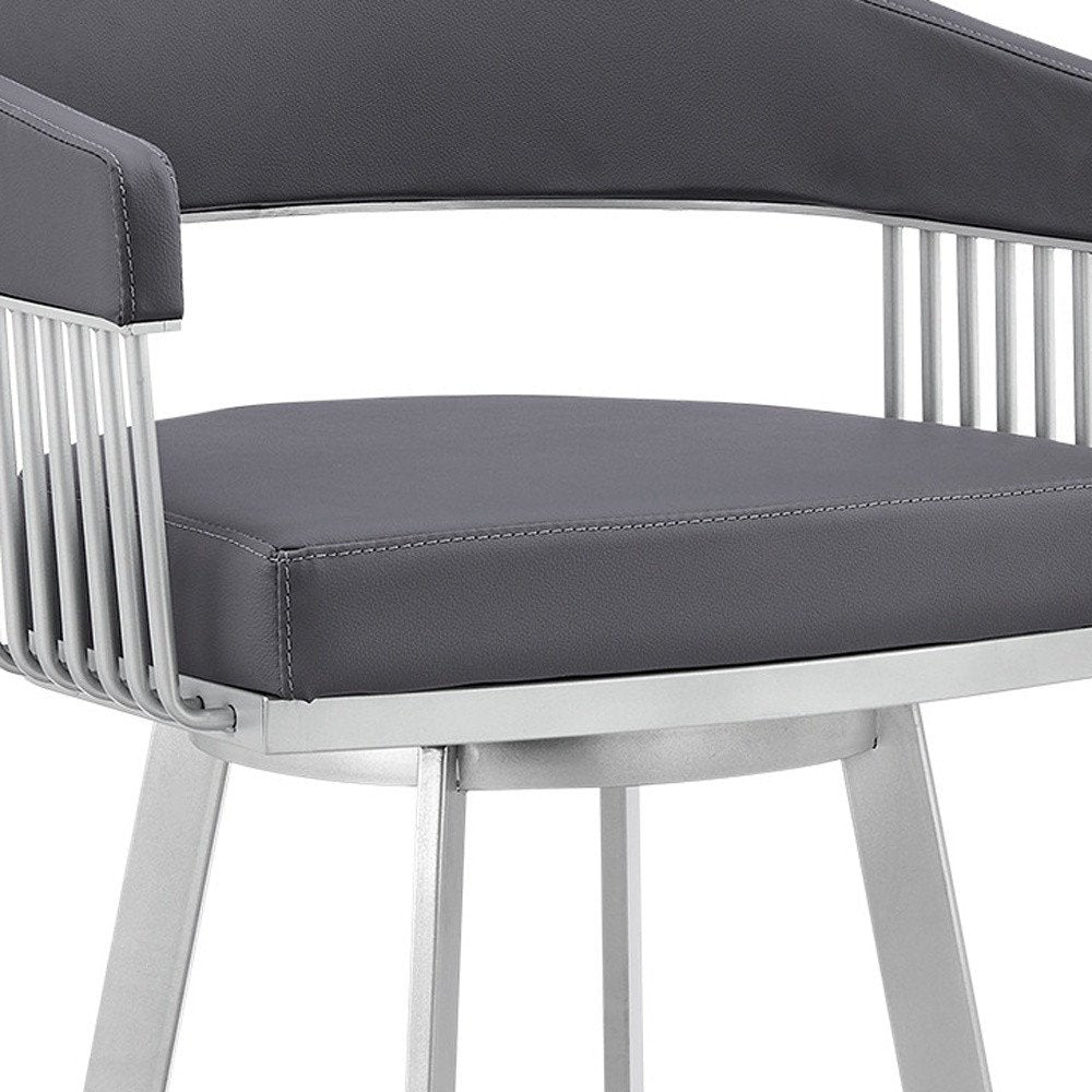 25" Slate Gray And Silver Iron Swivel Low Back Counter Height Bar Chair