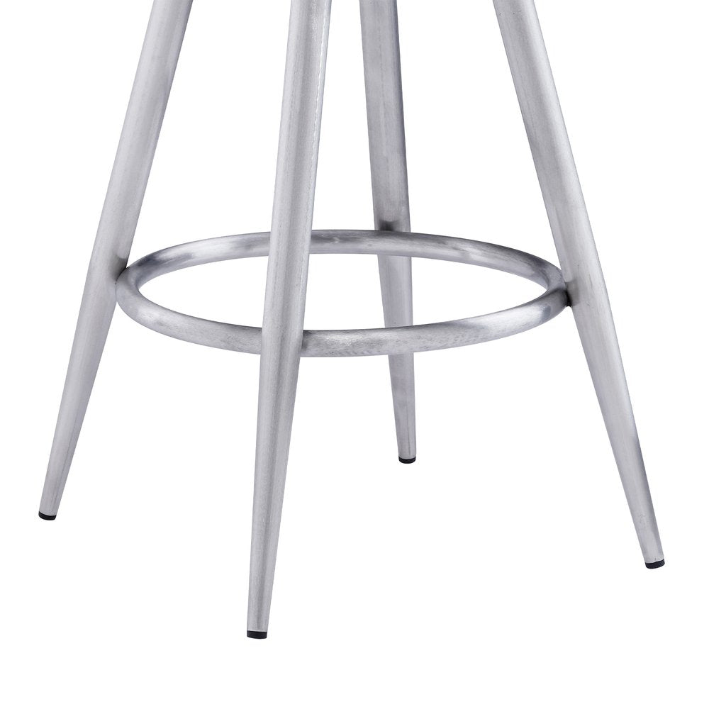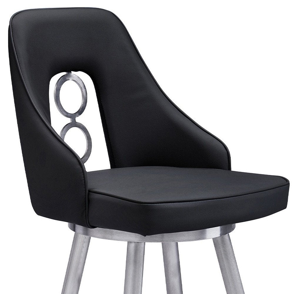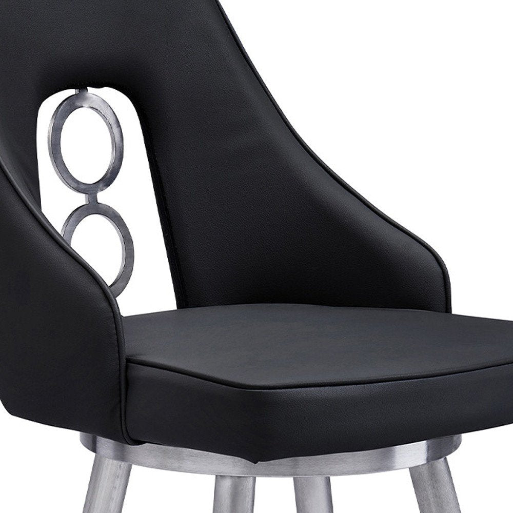 26" Black And Silver Faux Leather And Iron Swivel Counter Height Bar Chair