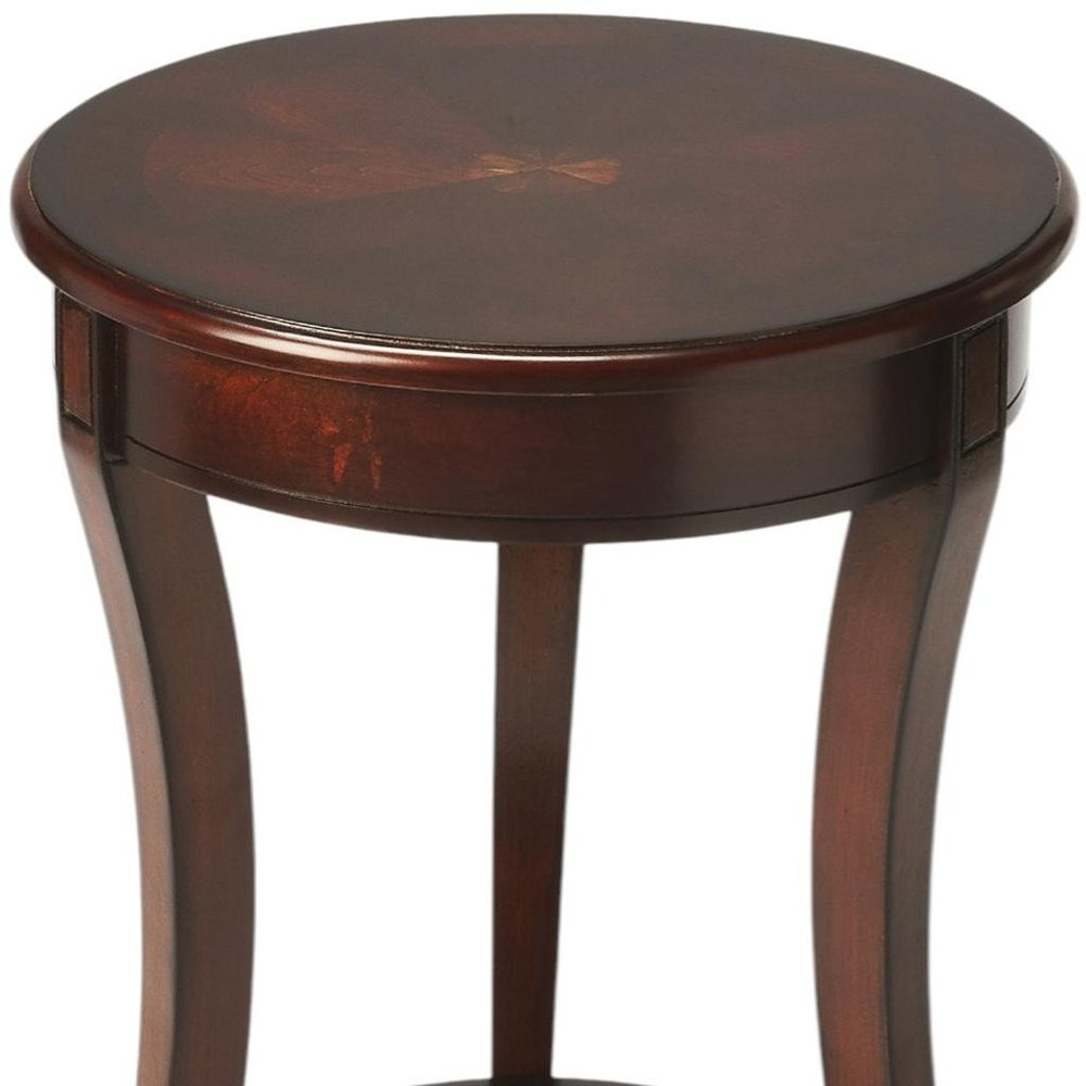 Keywords | wood round end table shelf, wood wood round end table, wood round end table, round end table shelf, 26" dark brown wood |
