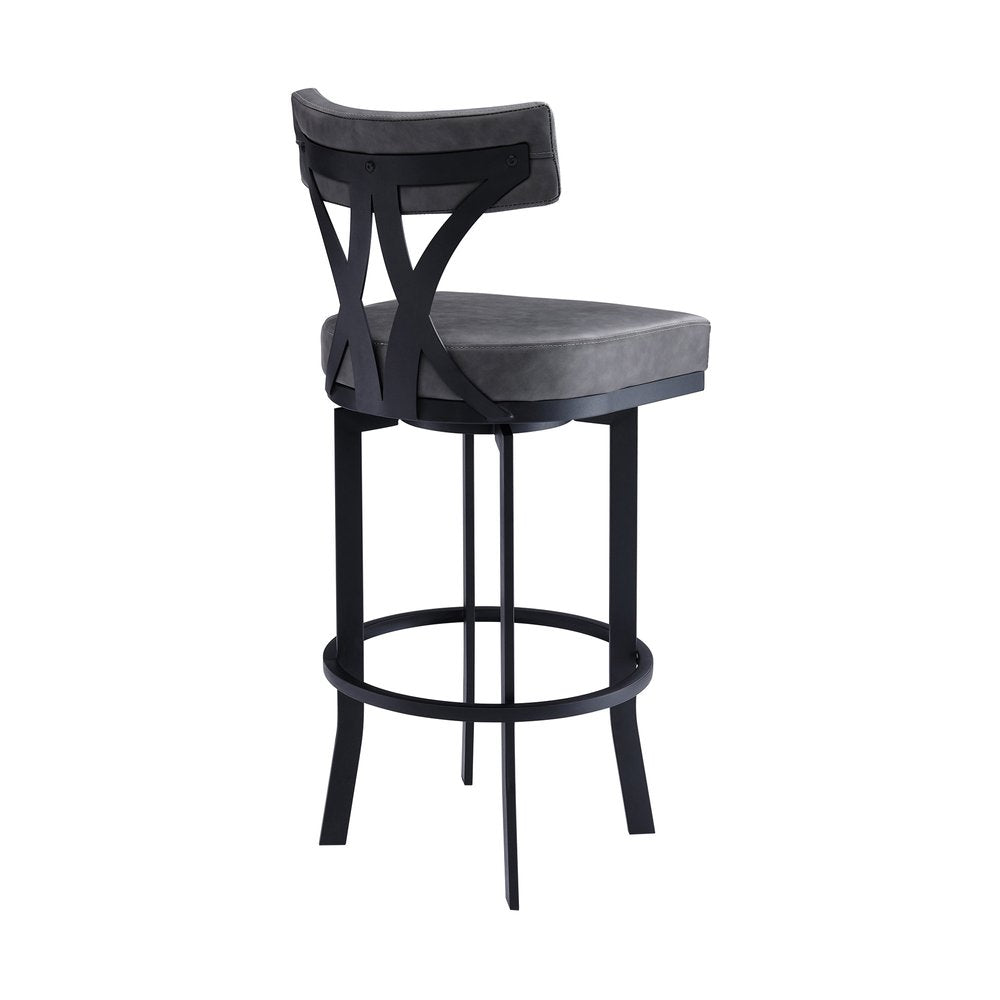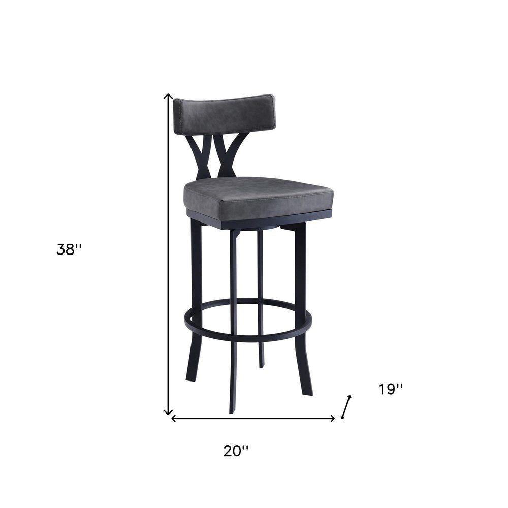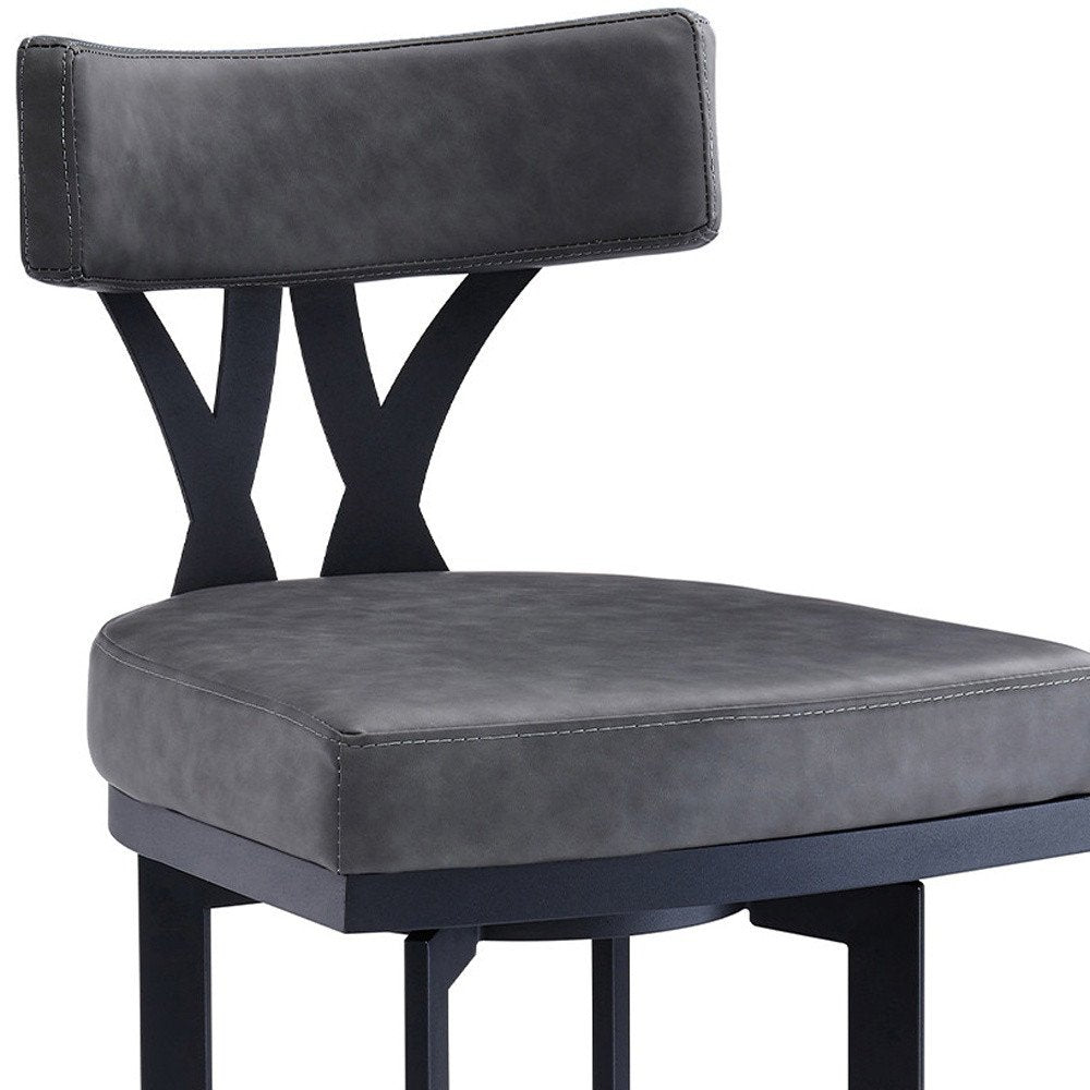 26" Gray And Black Faux Leather And Iron Low Back Counter Height Bar Chair