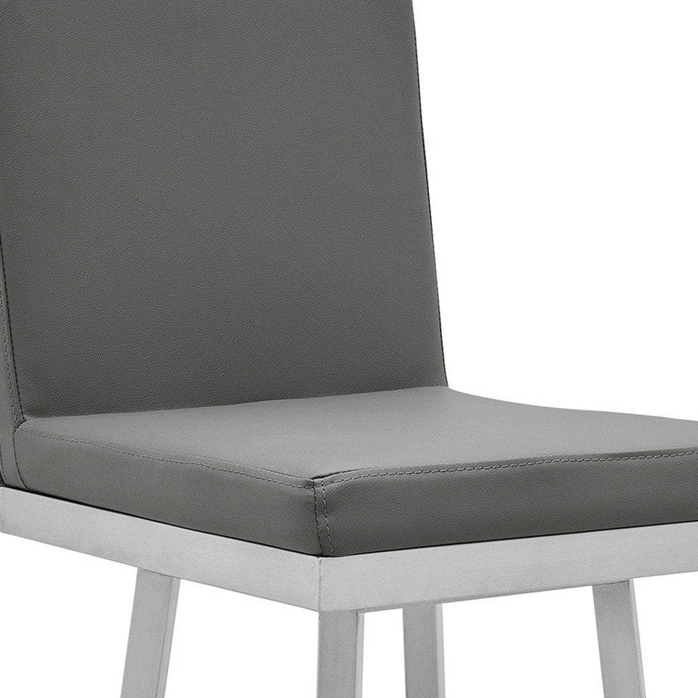 26" Gray And Silver Faux Leather And Iron Swivel Counter Height Bar Chair