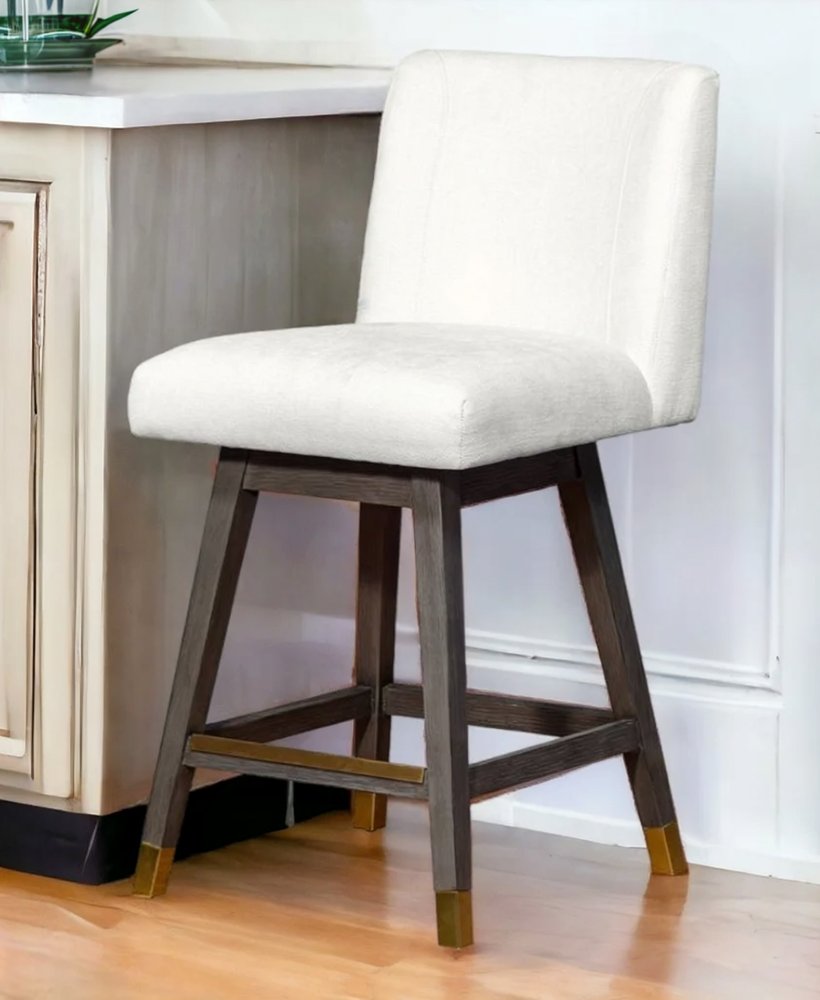 26" Pearl and Gray Solid Wood Counter Height Swivel Bar Chair