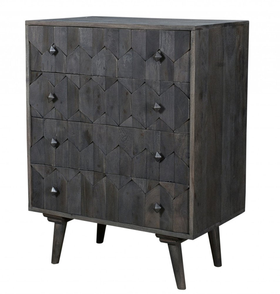 27" Dark Gray Solid Wood Four Drawer Dresser