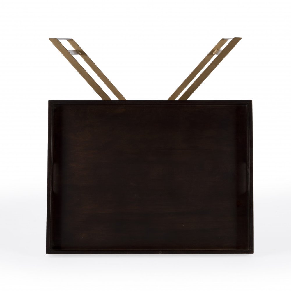 27" Gold And Walnut Solid Wood Rectangular End Table