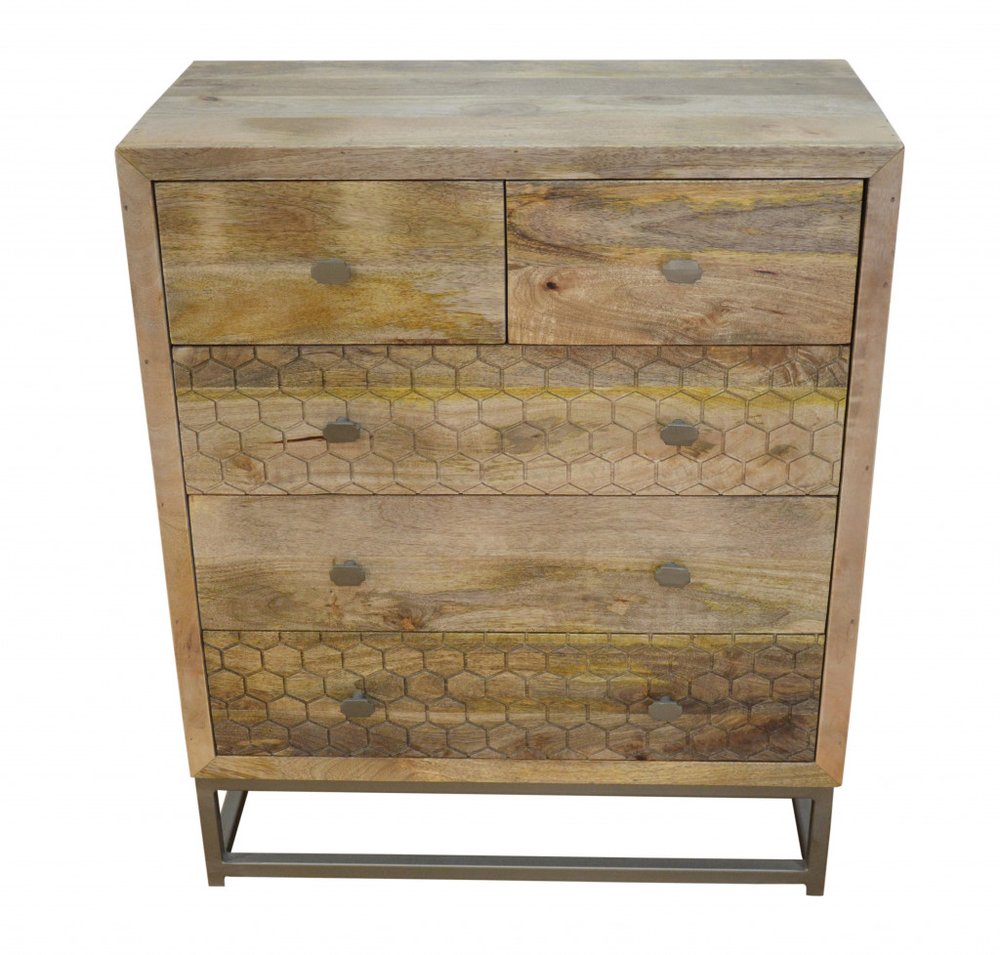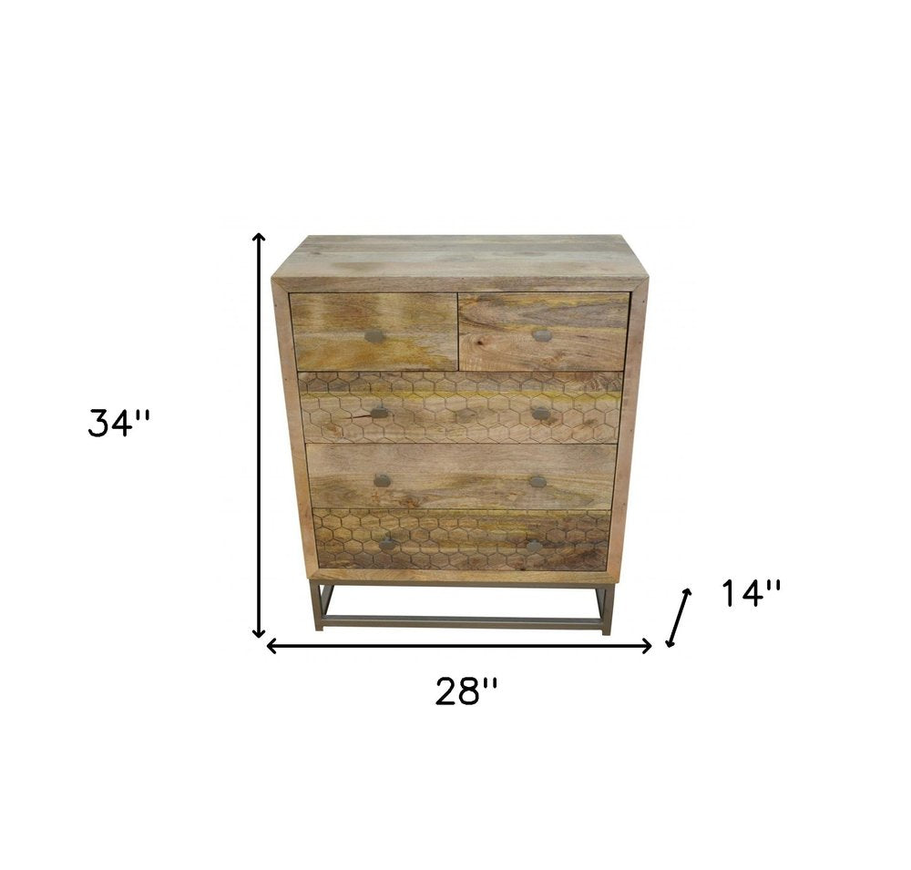 28" Brown Solid Wood Five Drawer Gentleman's Chest