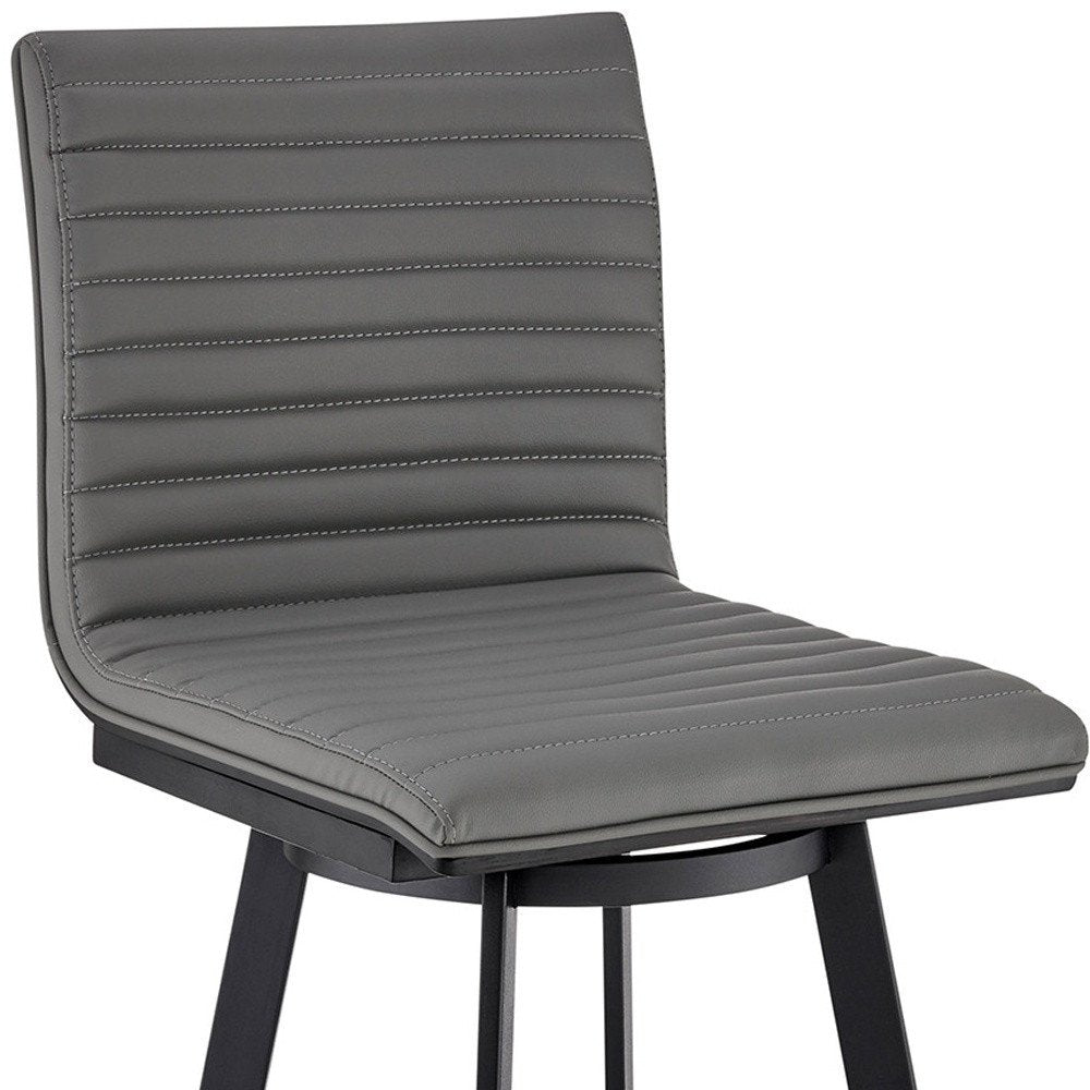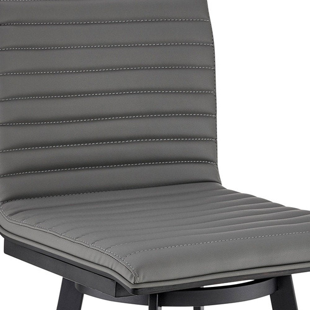 29" Gray And Black Faux Leather And Iron Swivel Bar Height Bar Chair