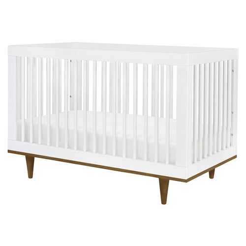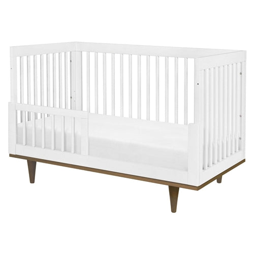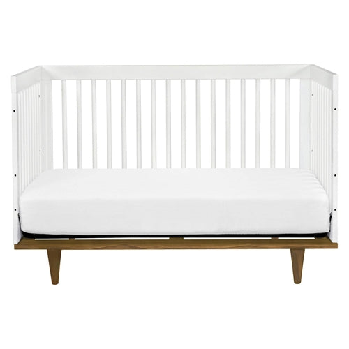 3-in-1 Modern Solid Wood Crib in White with Mid Century Style Legs in Walnut