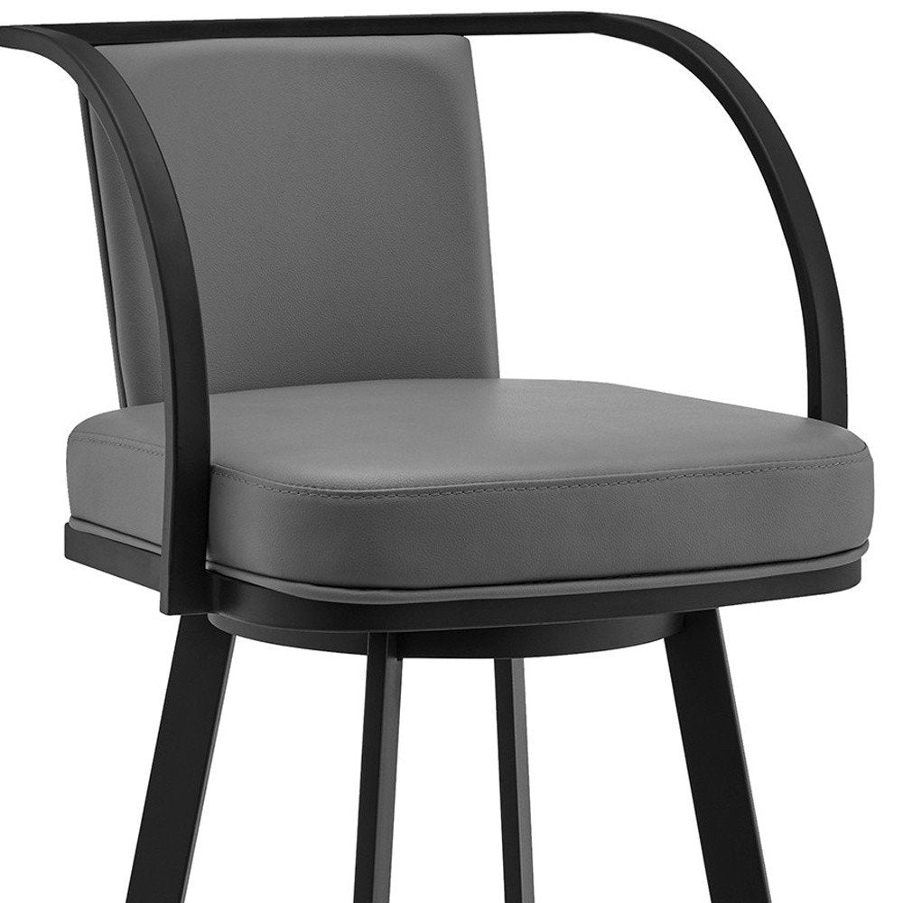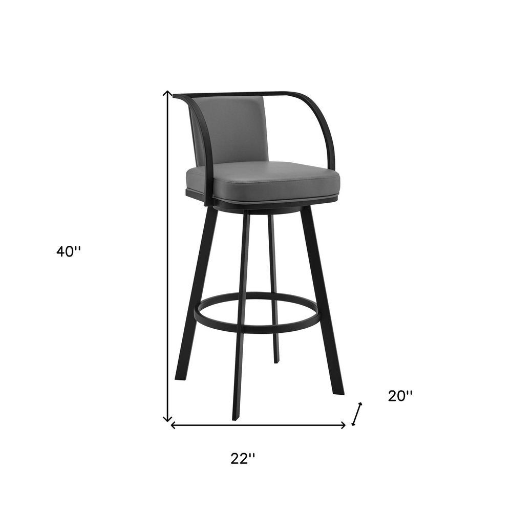 30" Gray And Black Faux Leather And Iron Swivel Bar Height Bar Chair