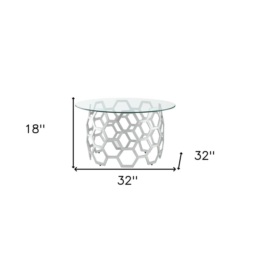 32" Clear And Gold Glass And Iron Round Coffee Table