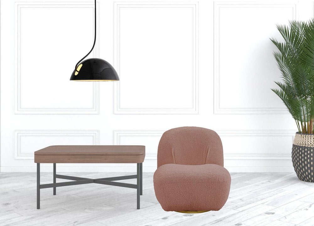 32" Pink and Brown Sherpa Swivel Slipper Chair