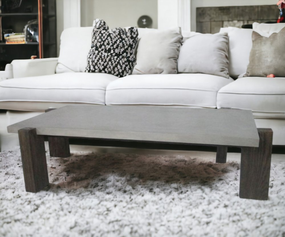 33" Dark Gray and Brown Concrete And Solid Wood Coffee Table