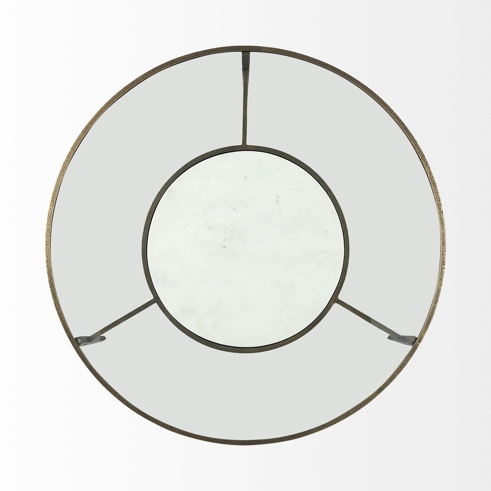 36" Clear and Bronze Glass and Metal Round Coffee Table With Shelf
