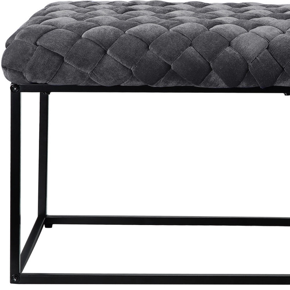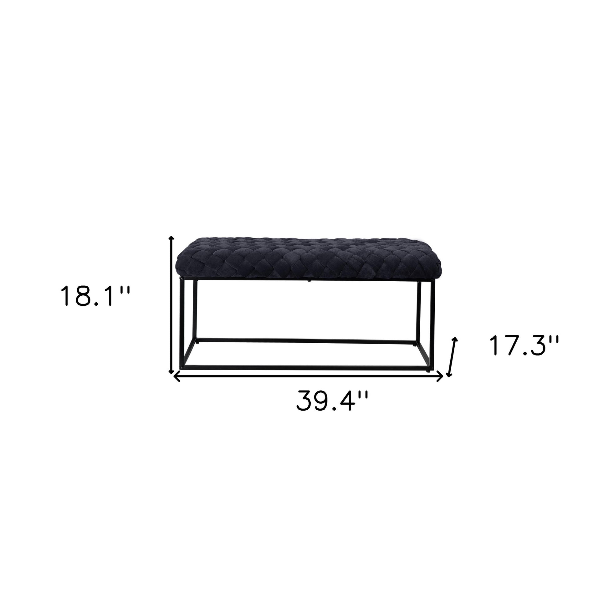 39" Black Velvet Upholstered Bench