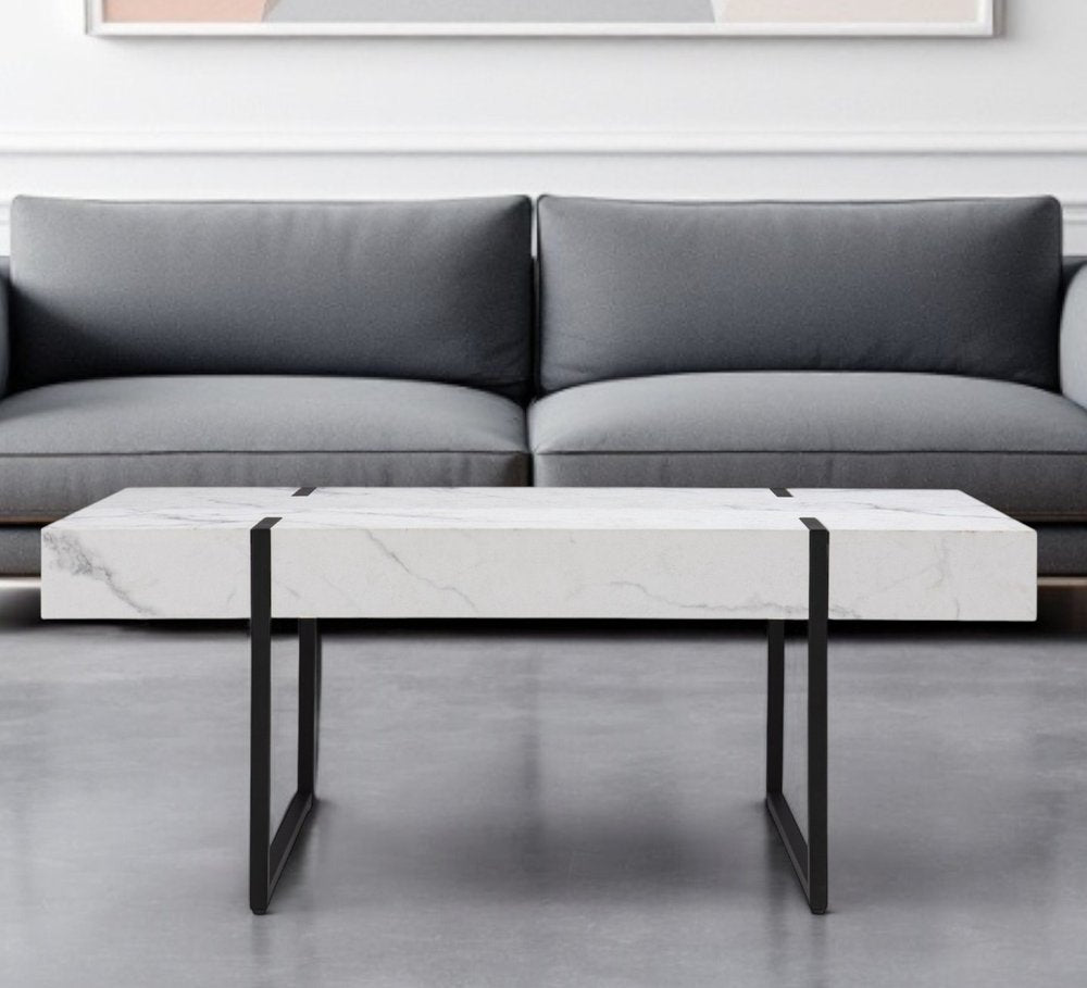 43" White And Black Faux Marble And Metal With Iron Coffee Table