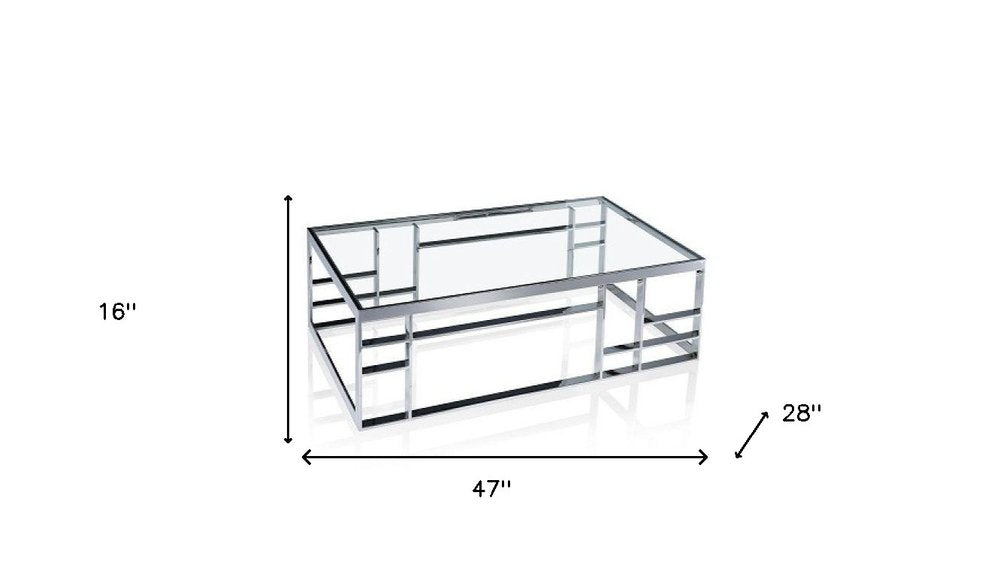 47" Clear and Silver Glass And Stainless Steel Frame Coffee Table