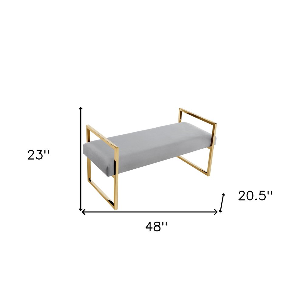 48" Black and Silver Upholstered Velvet Bench