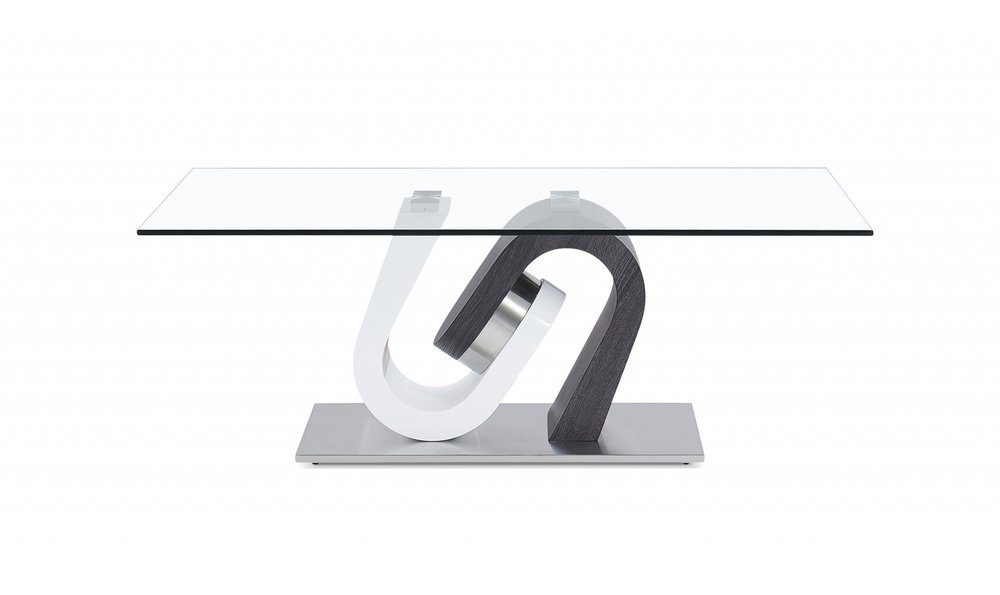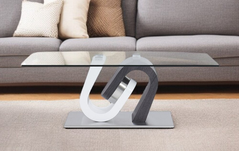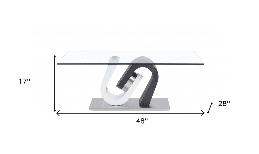 48" Clear Gray and White Glass And Steel Mod Coffee Table