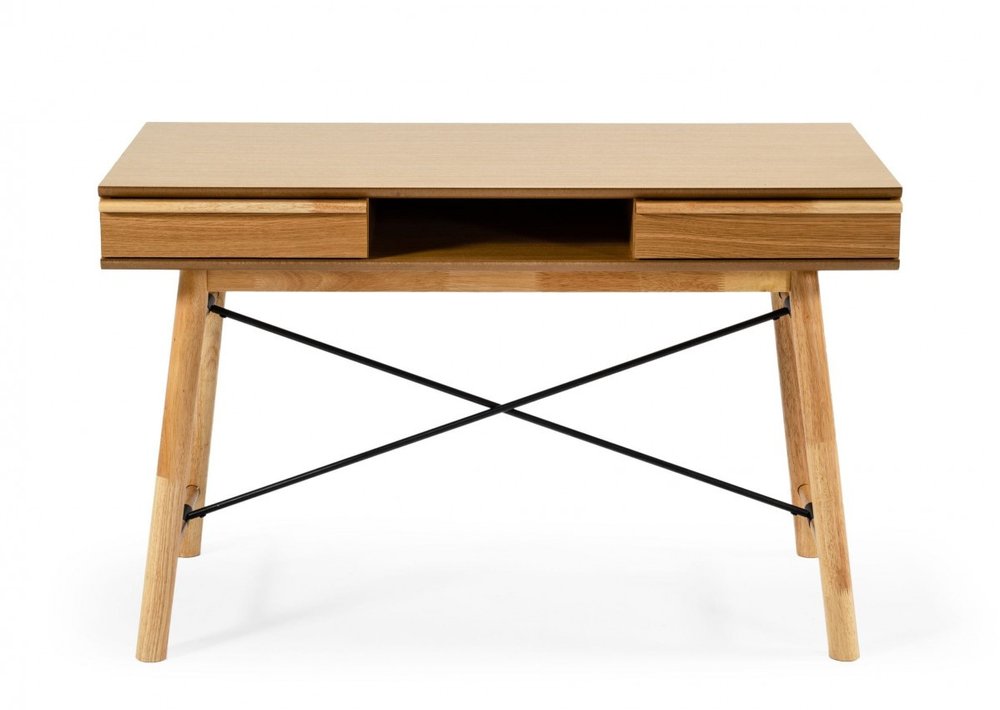 48" Oak Modern Rectangular Writing Desk With Two Drawers