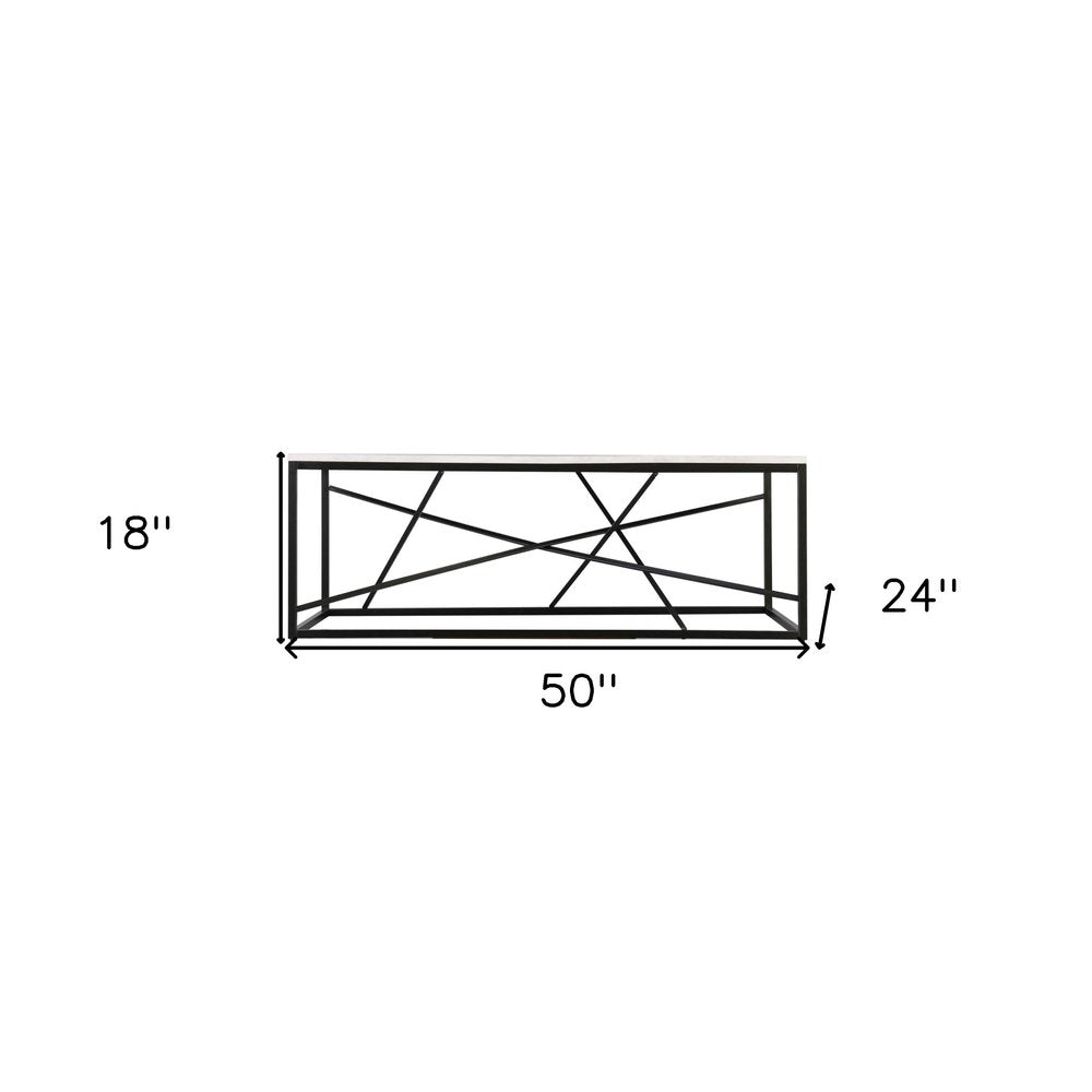50" Black And White Faux Marble and Metal Geo Rectangular Coffee Table