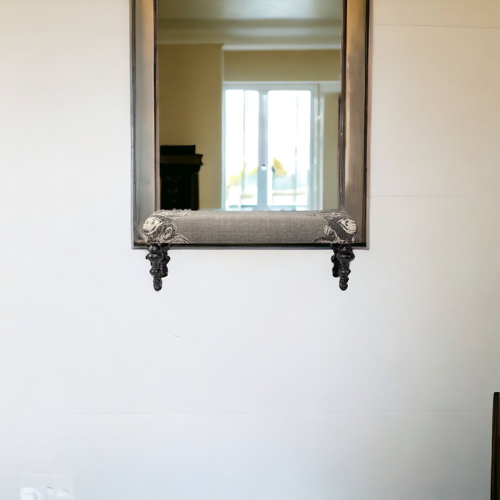 55" Gray and Black Upholstered Cotton Blend Floral Distressed Bench