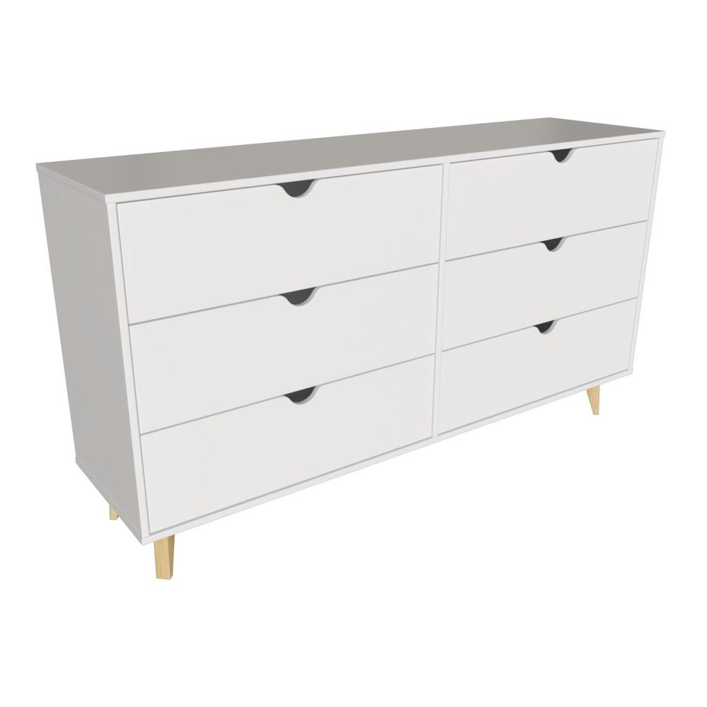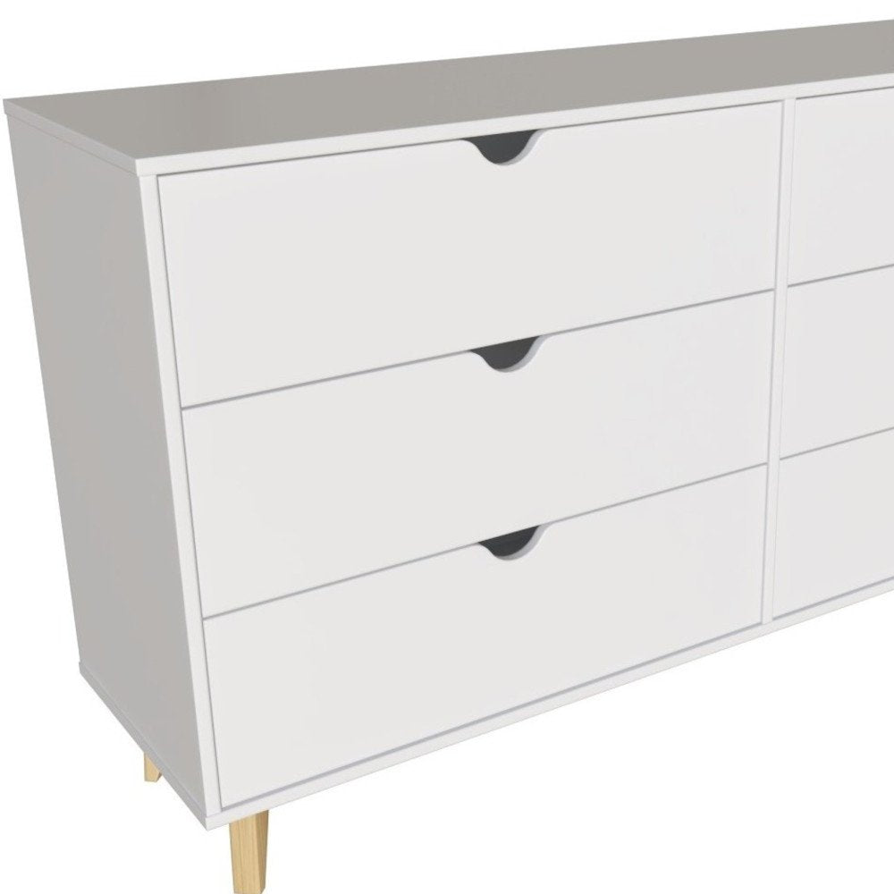 59" White Scoop Handle Six Drawer Double Dresser