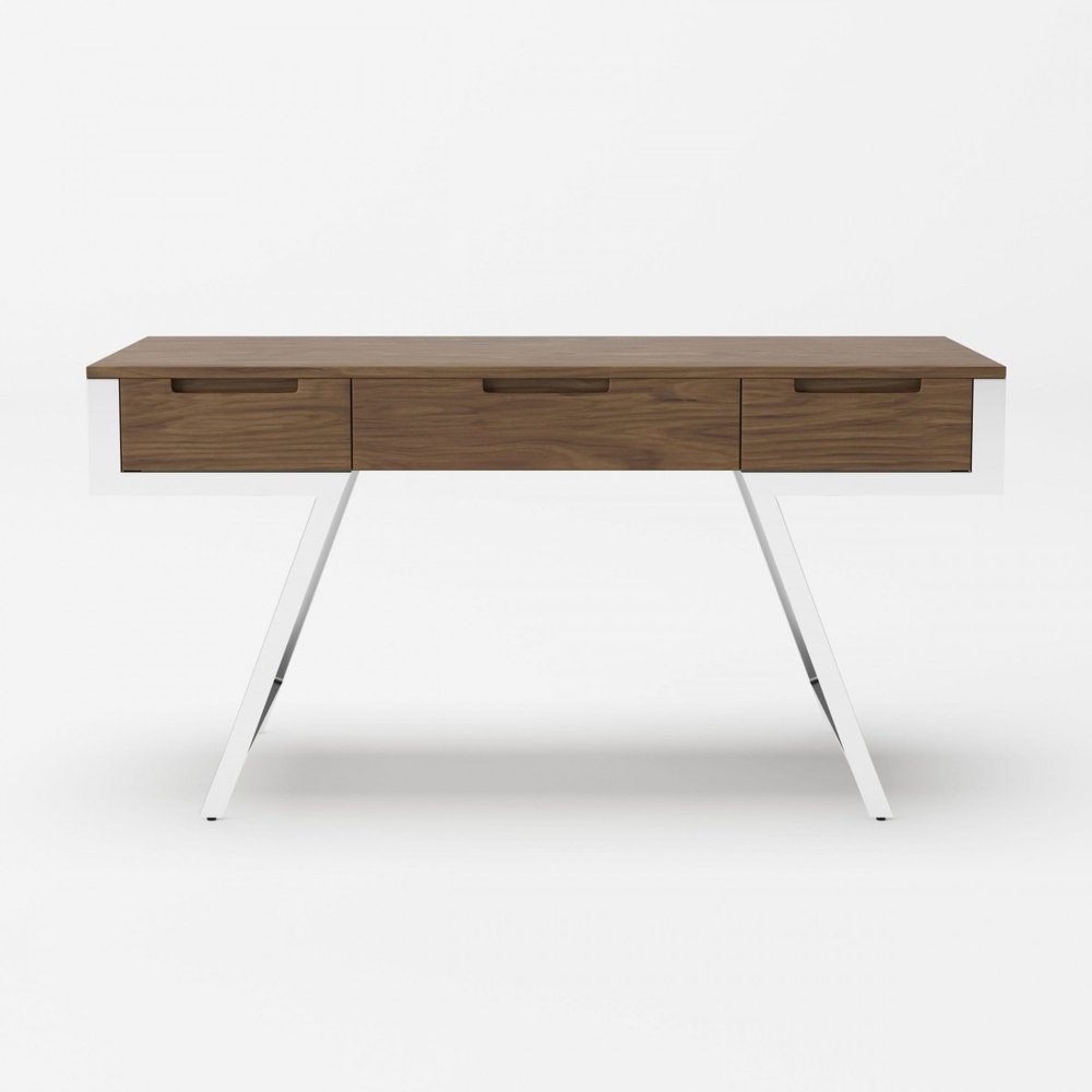 63" Walnut and Chrome Rectangular Writing Desk With Three Drawers