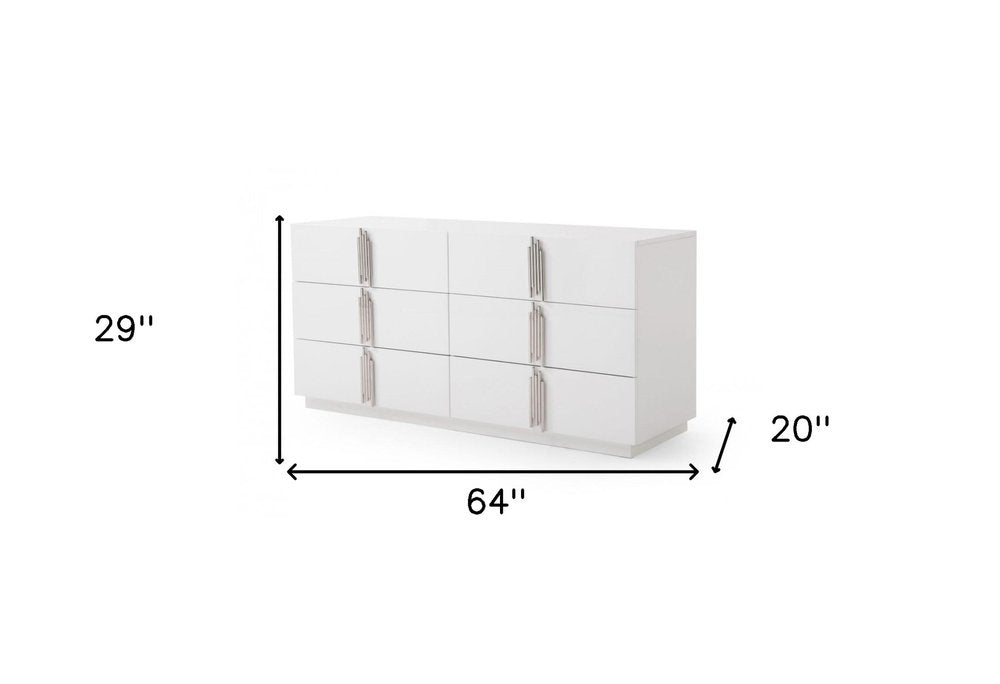 64" White Solid and Manufactured Wood Six Drawer Double Dresser
