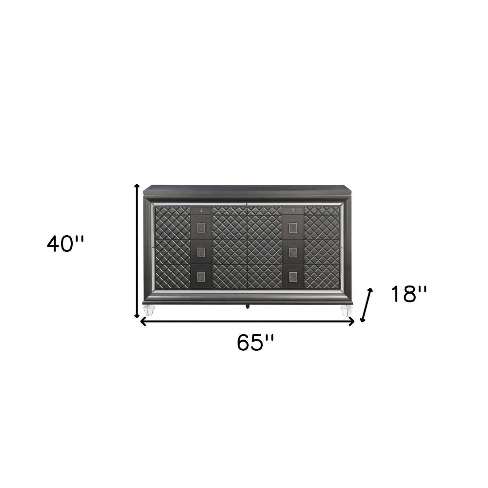 65" Gray Solid and Manufactured Wood Eight Drawer Double Dresser