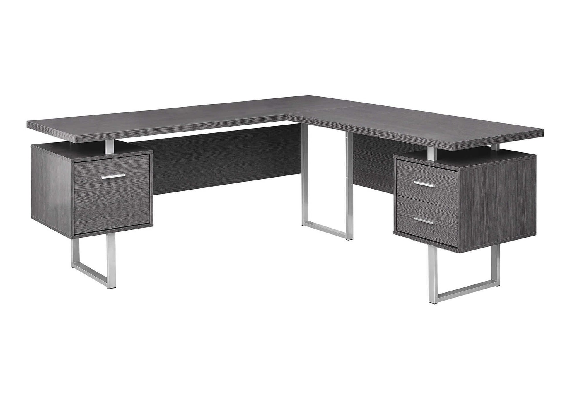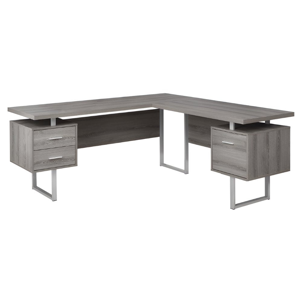 71" Taupe and Silver L Shape Computer Desk With Three Drawers