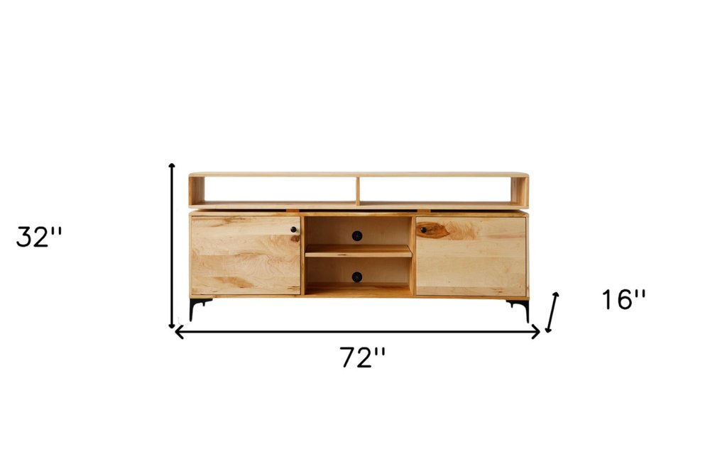 72" Solid Wood Enclosed and Open Storage TV Stand