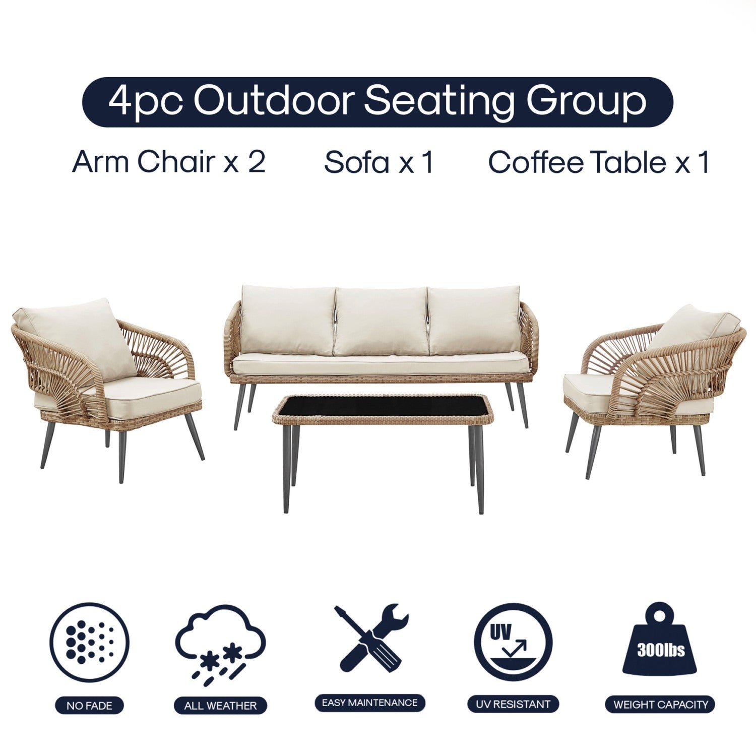- RATTAN DESIGN – Our 4-piece seating group will bring a breezy feel to your yard or patio. Fashionable rattan design complements any space, and the durable construction will create a beautiful and comfortable outdoor living space for you.