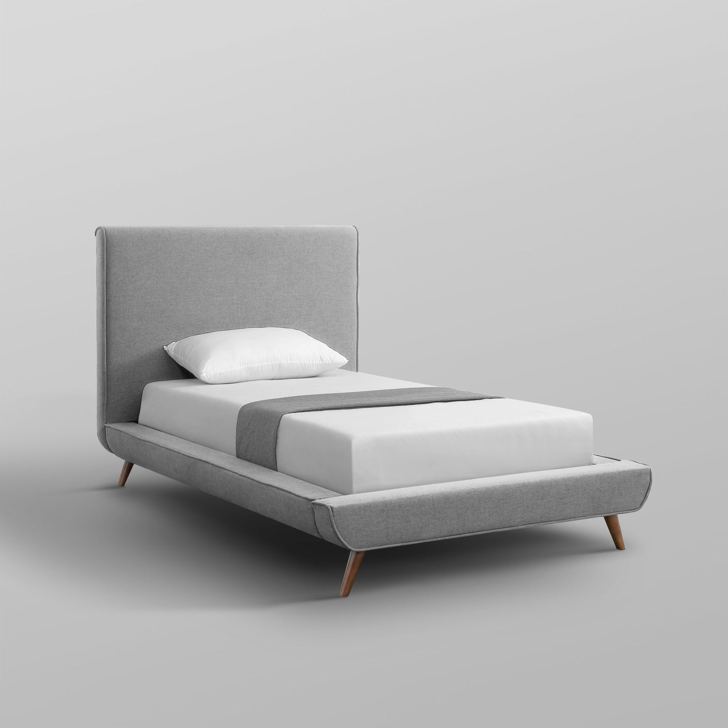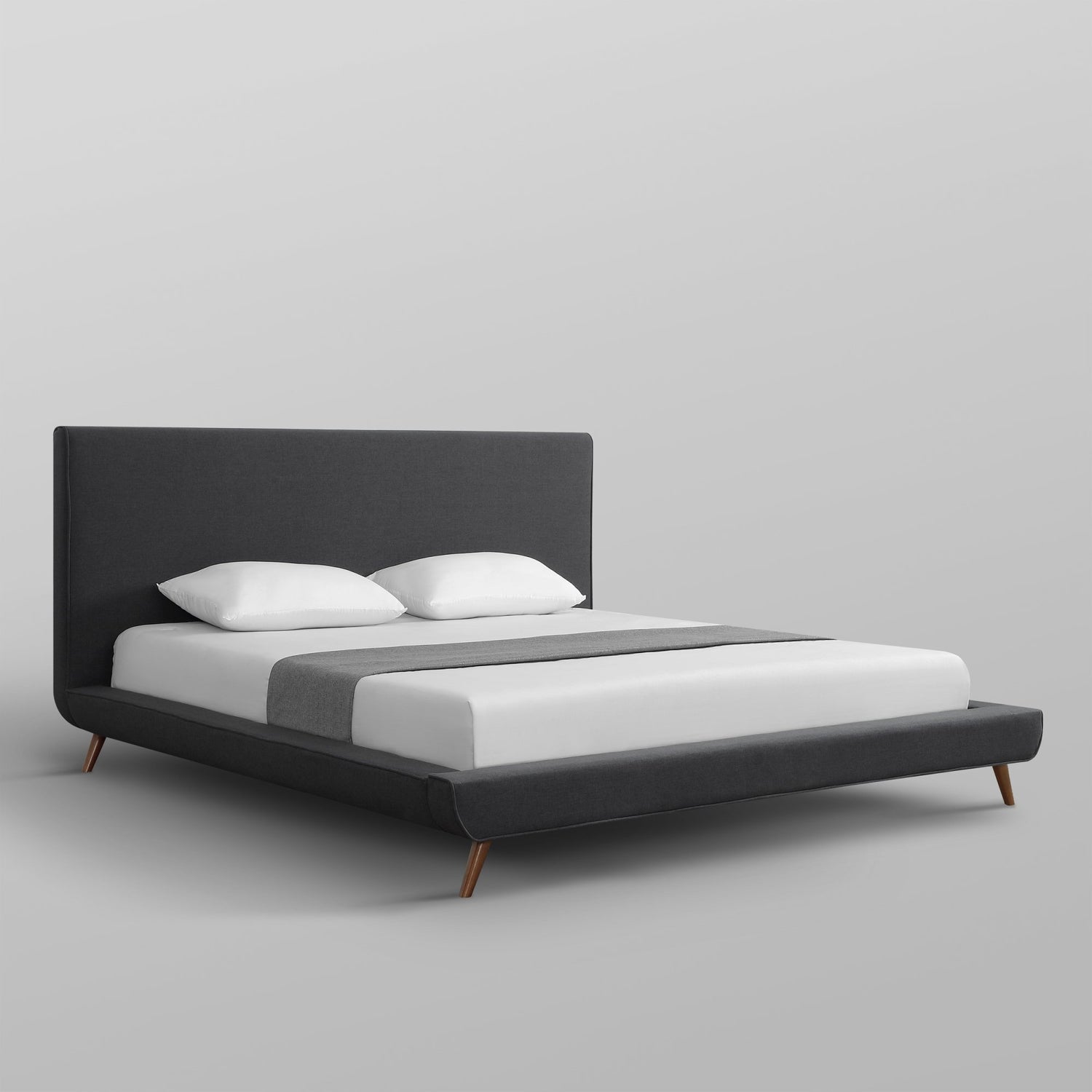 - MID-CENTURY MODERN – Anchor your bedroom in clean, refreshing style with this upholstered platform bed, taking inspiration from Mid-Century designs. Features flat upholstered headboard and walnut finish tapered legs which is a signature to classic look