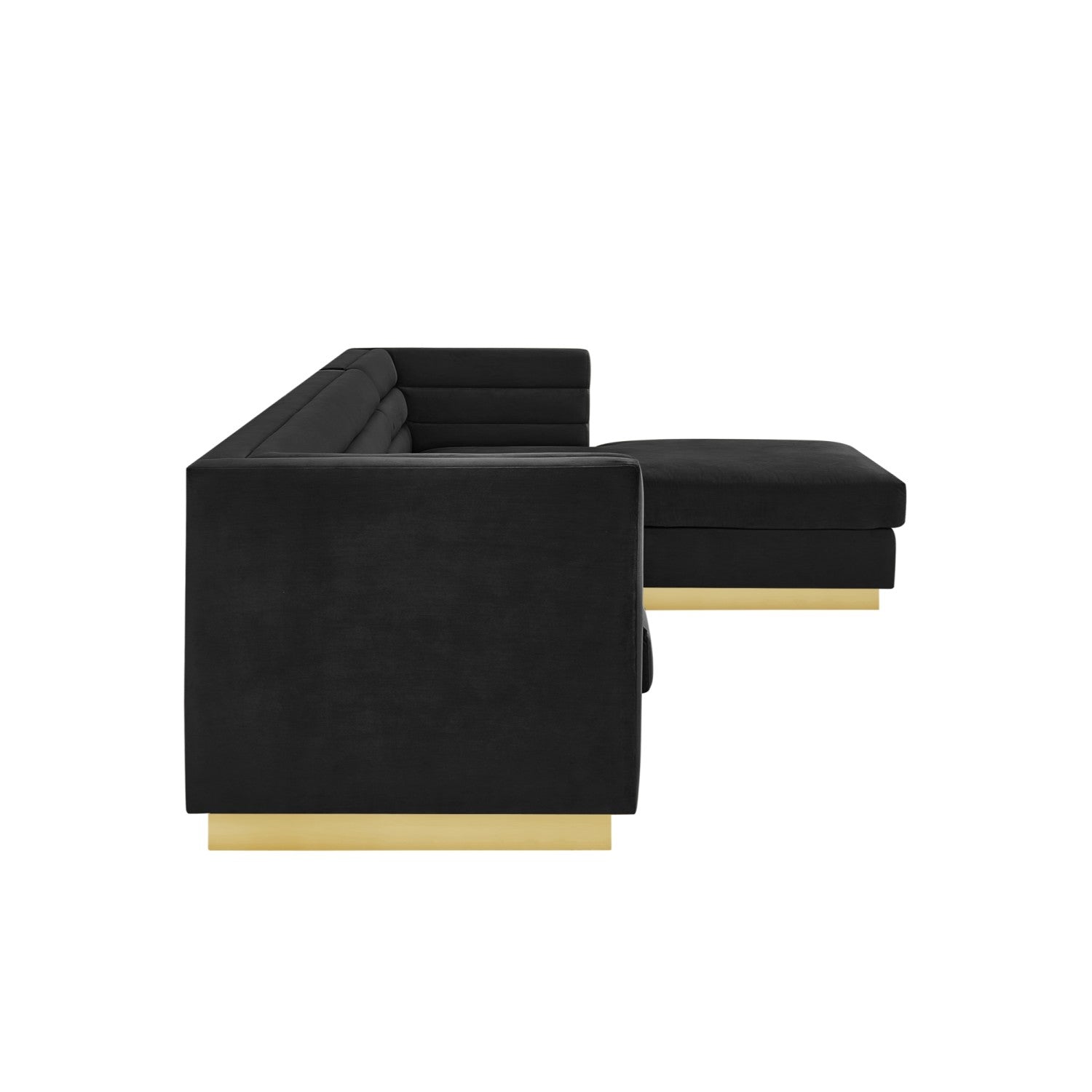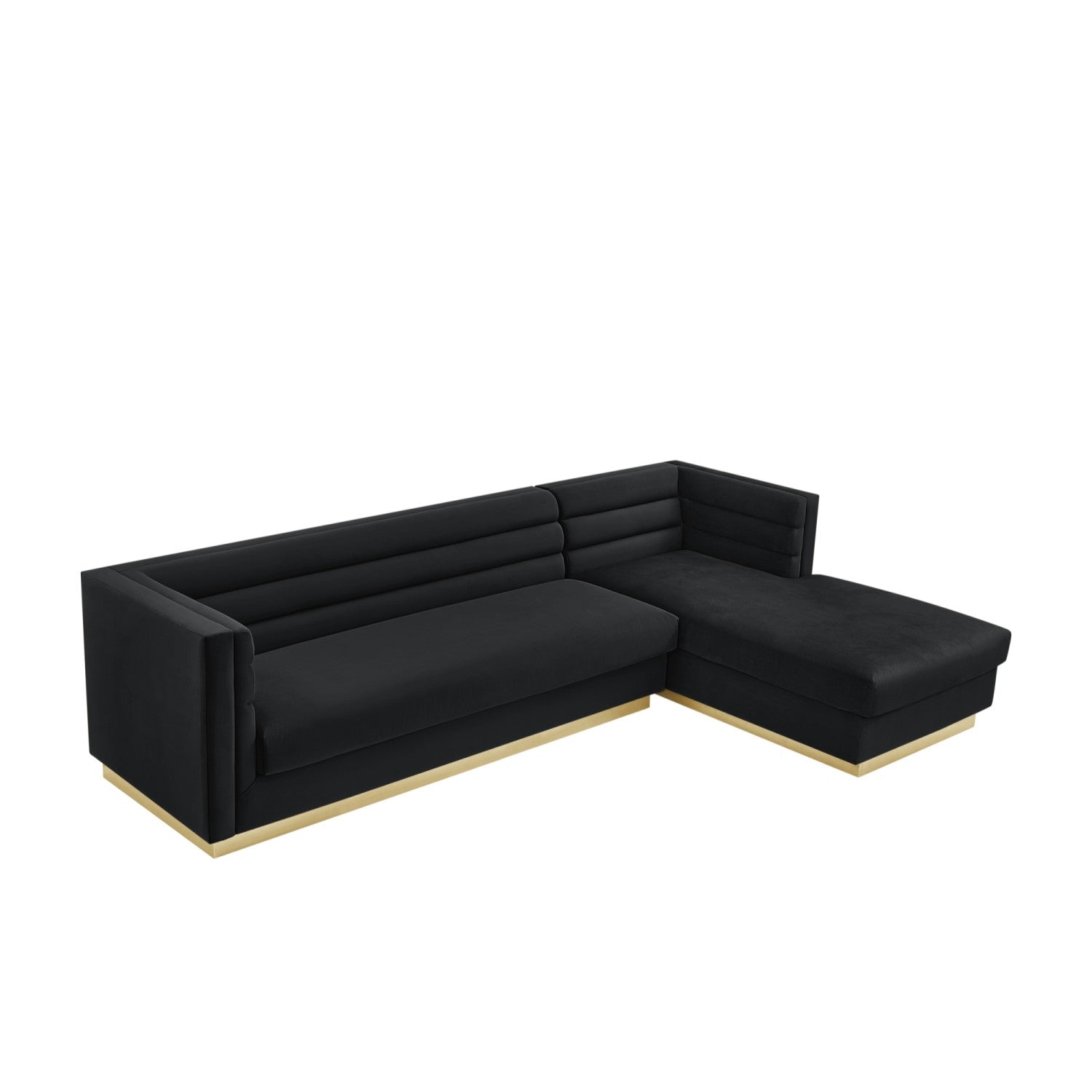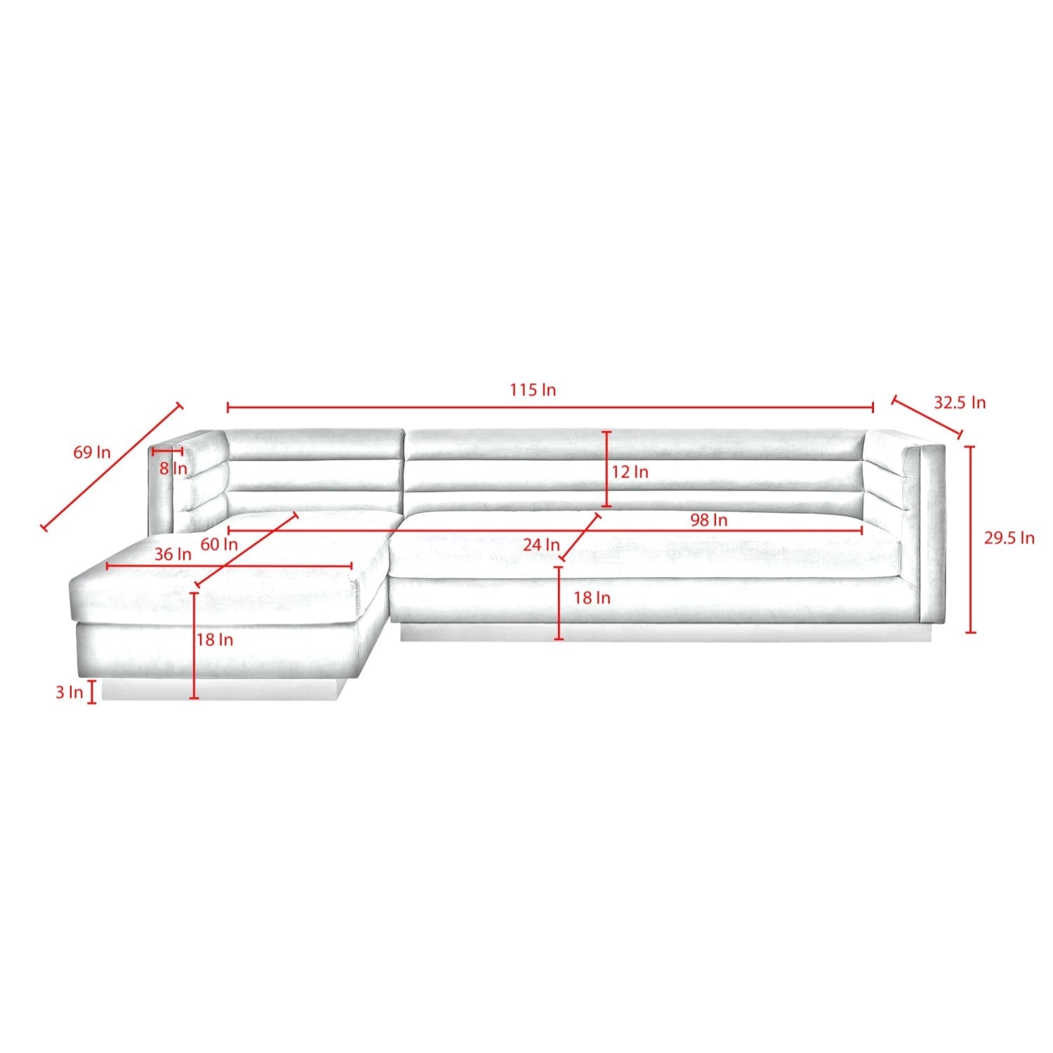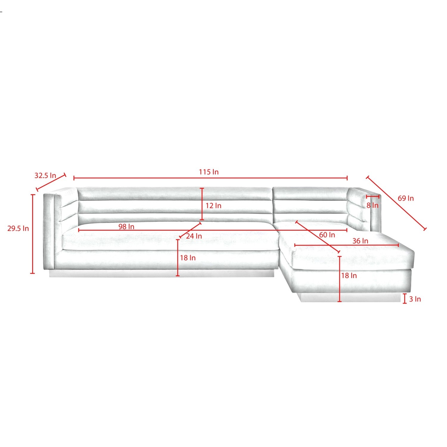 - MODERN GLAM – This stylish chaise sectional sofa with modern appeal and velvet buttery soft upholstery will make a statement in any room. Horizontal channel tufting, straight lines, square arms will perfectly match with any design theme.