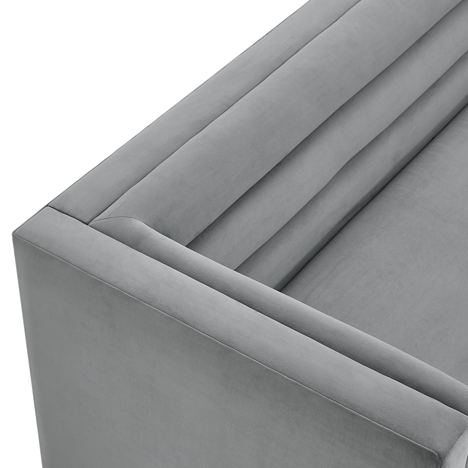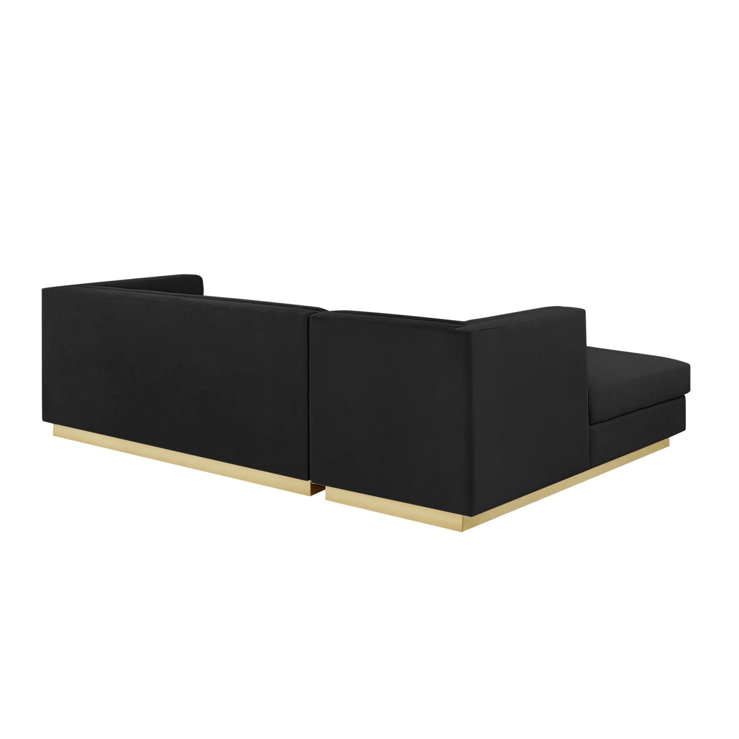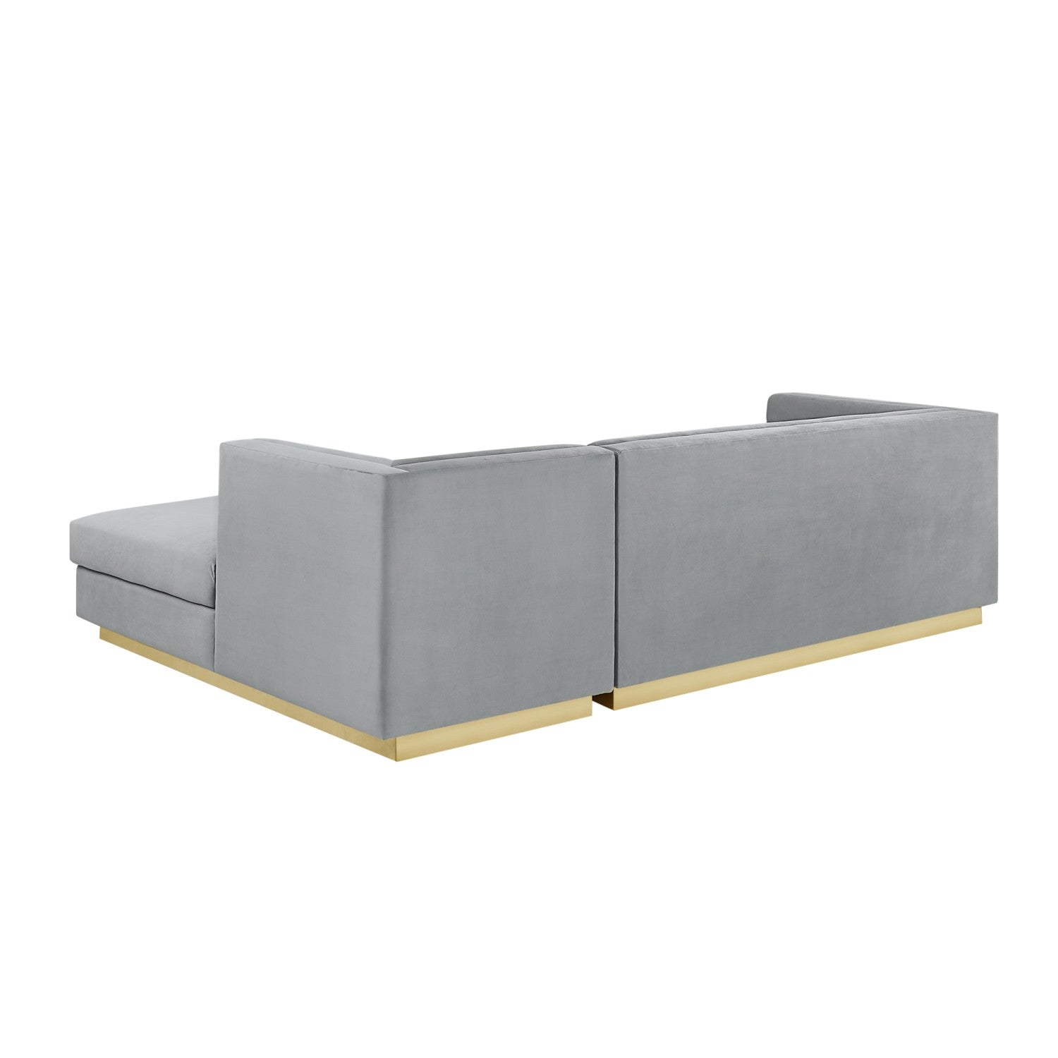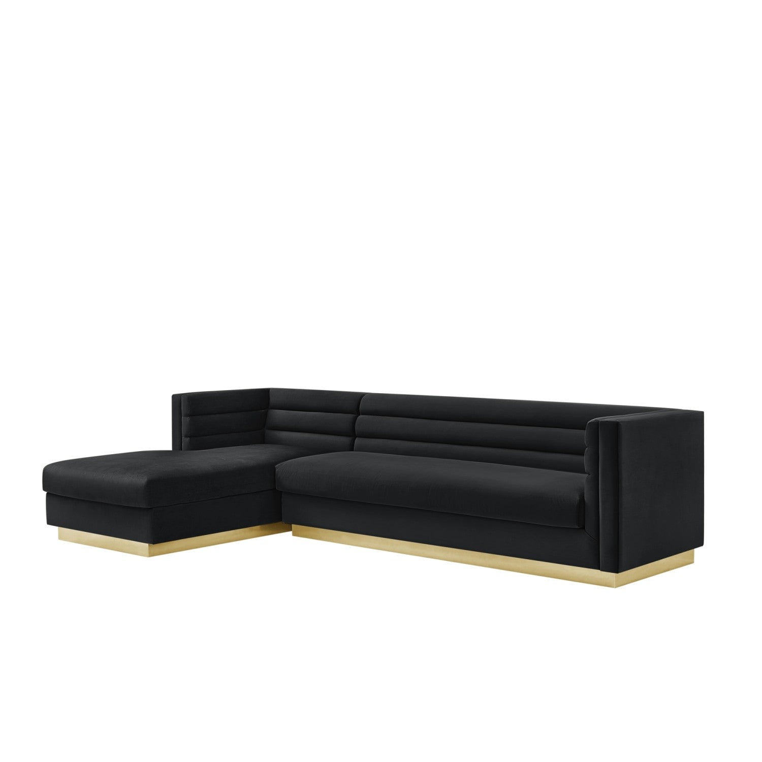 - MODERN GLAM – This stylish chaise sectional sofa with modern appeal and velvet buttery soft upholstery will make a statement in any room. Horizontal channel tufting, straight lines, square arms will perfectly match with any design theme.