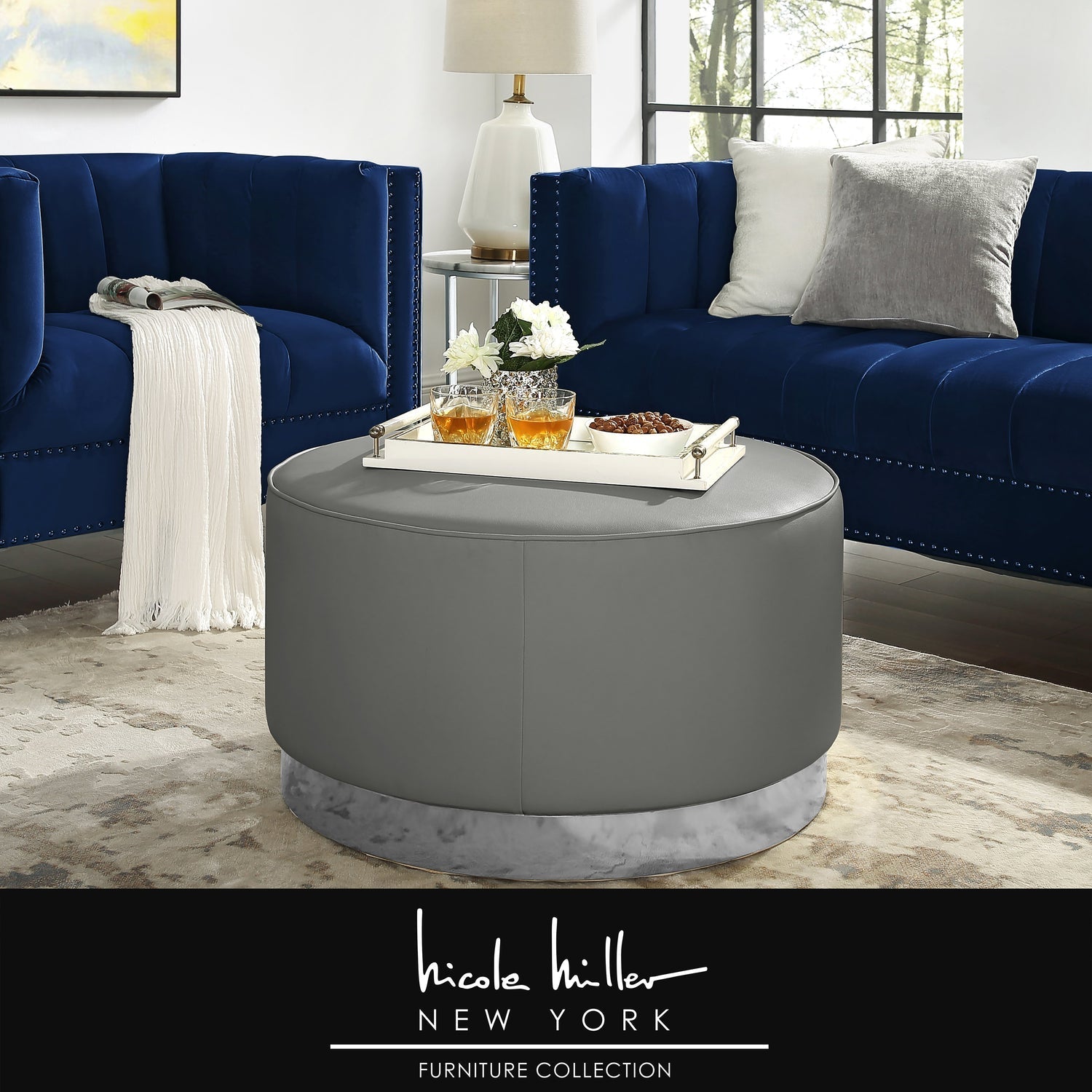 - NO ASSEMBLY - No assembly required for round ottoman.
