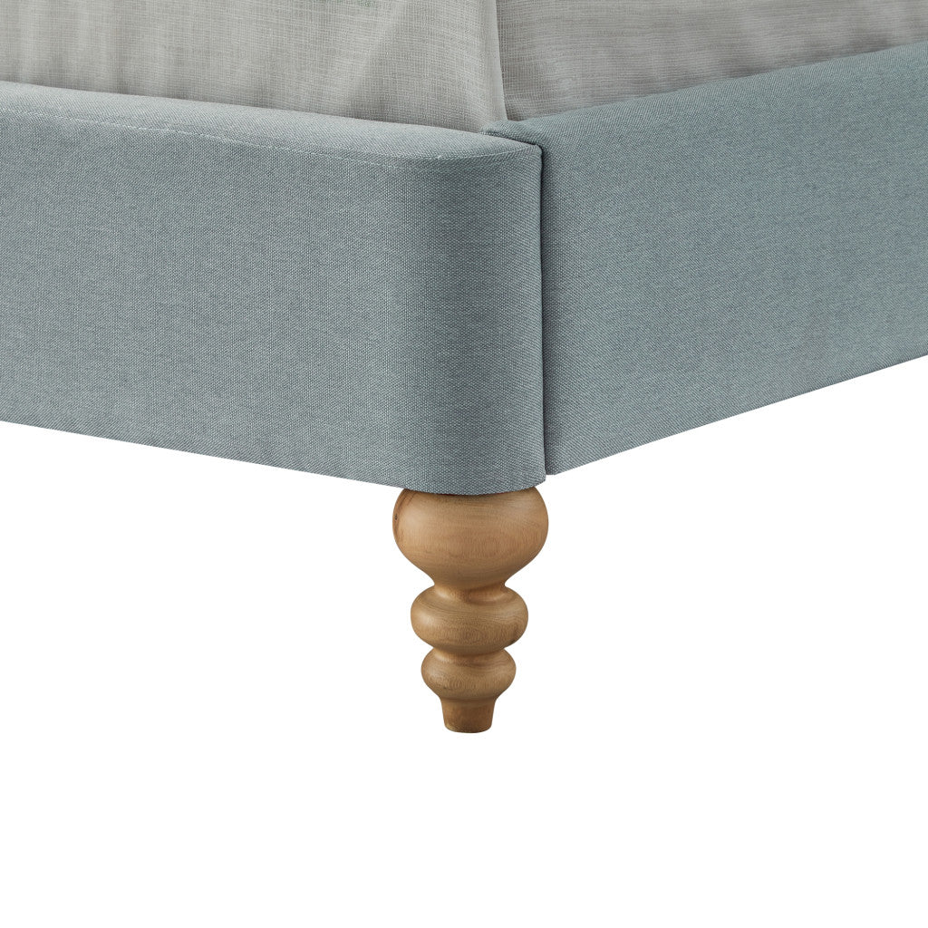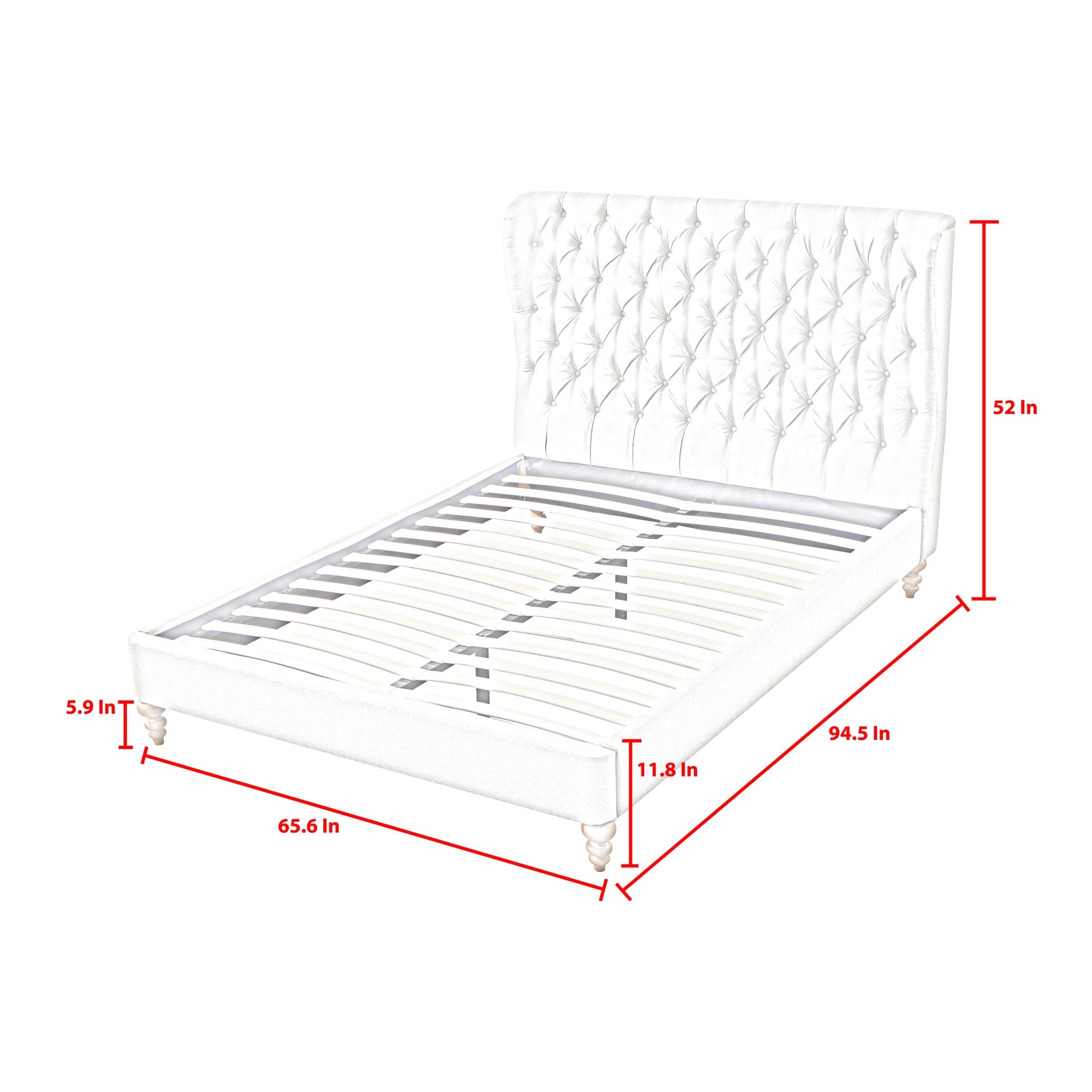 Beige Solid Wood King Tufted Upholstered Linen Bed