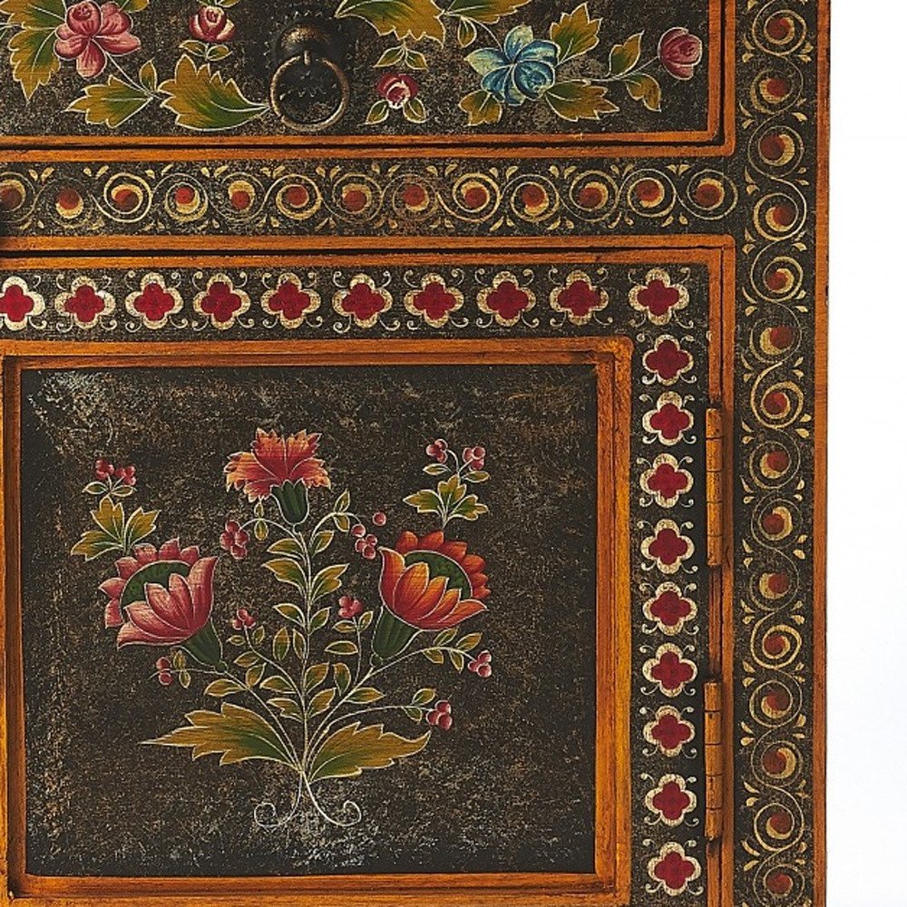 18" Dark Brown Solid Wood Frame Accent Cabinet With Two Drawers