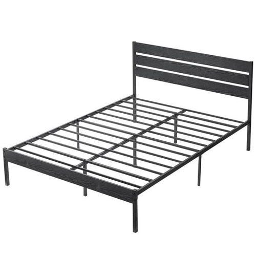 Black Rustic Industrial Platform Bed Frame Wood Slatted Headboard and Footboard